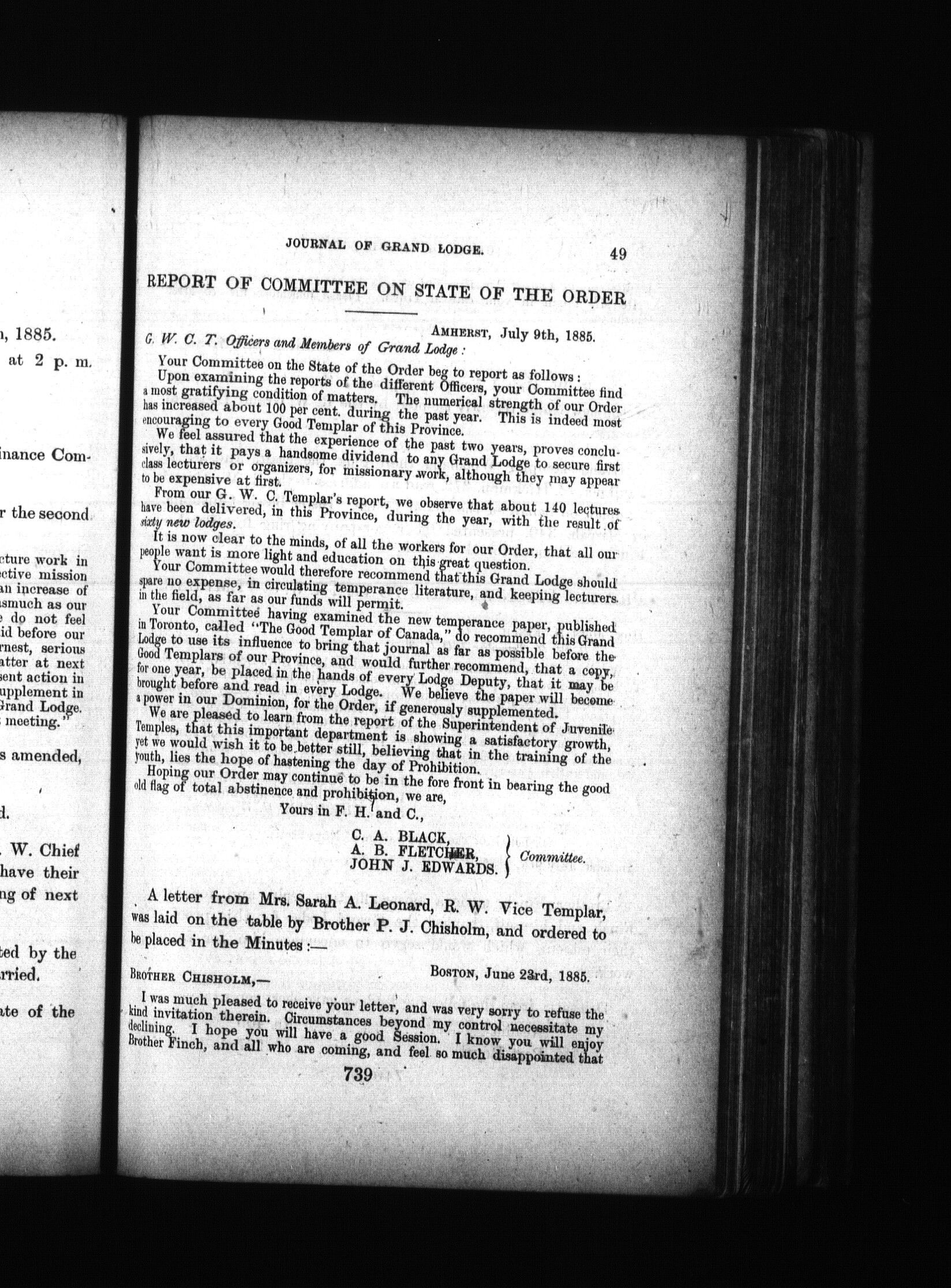 Journal of proceedings of the ... annual session of the Grand Temple, Independent Order of Good Templars, of the province of Nova Scotia : Proceedings of the nineteenth annual session of the Loyal Grand Lodge of Nova Scotia, I.O.G.T. : held at Amherst, N.S., July 7th, 8th and 9th, 1885