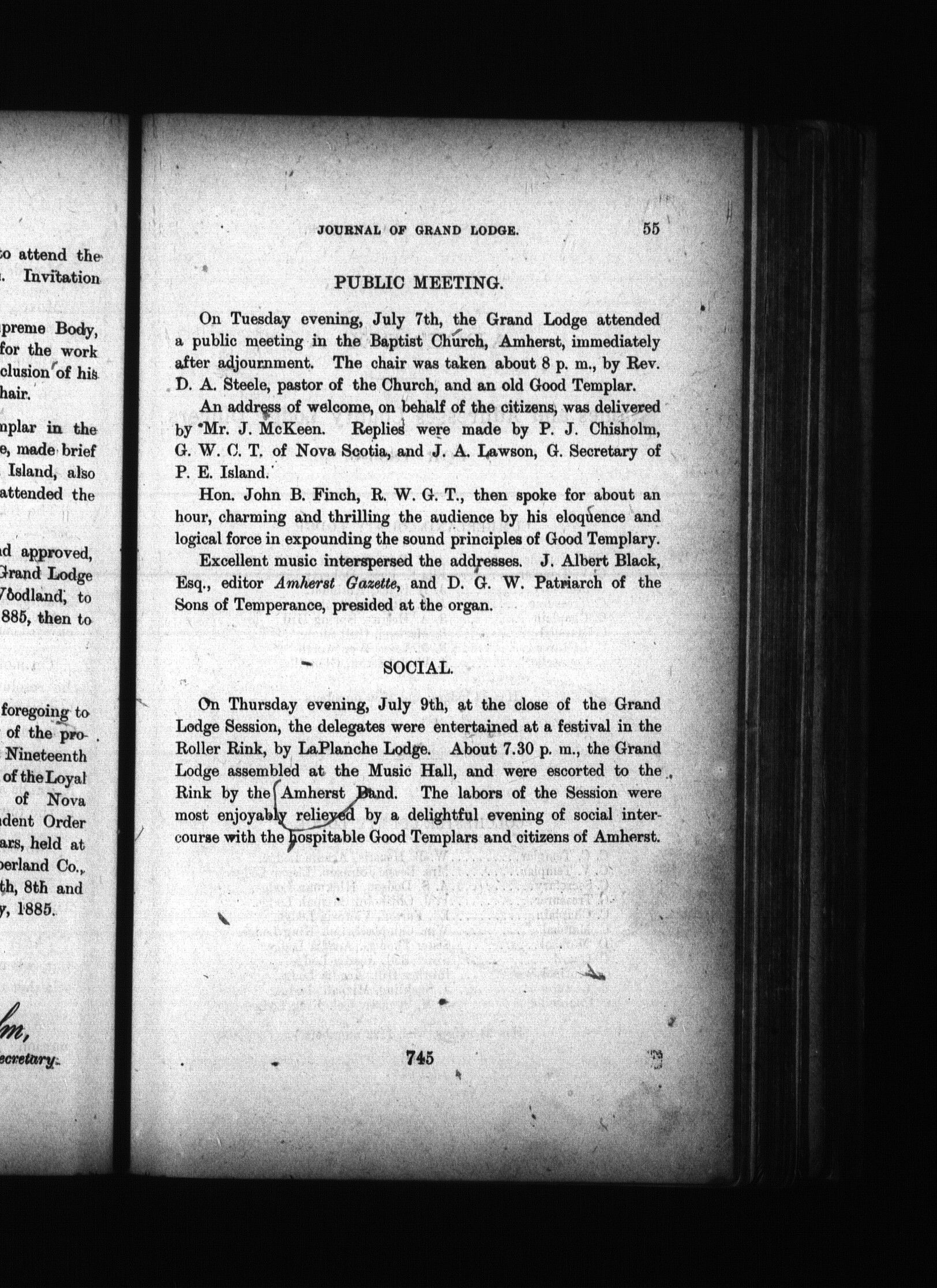 Journal of proceedings of the ... annual session of the Grand Temple, Independent Order of Good Templars, of the province of Nova Scotia : Proceedings of the nineteenth annual session of the Loyal Grand Lodge of Nova Scotia, I.O.G.T. : held at Amherst, N.S., July 7th, 8th and 9th, 1885