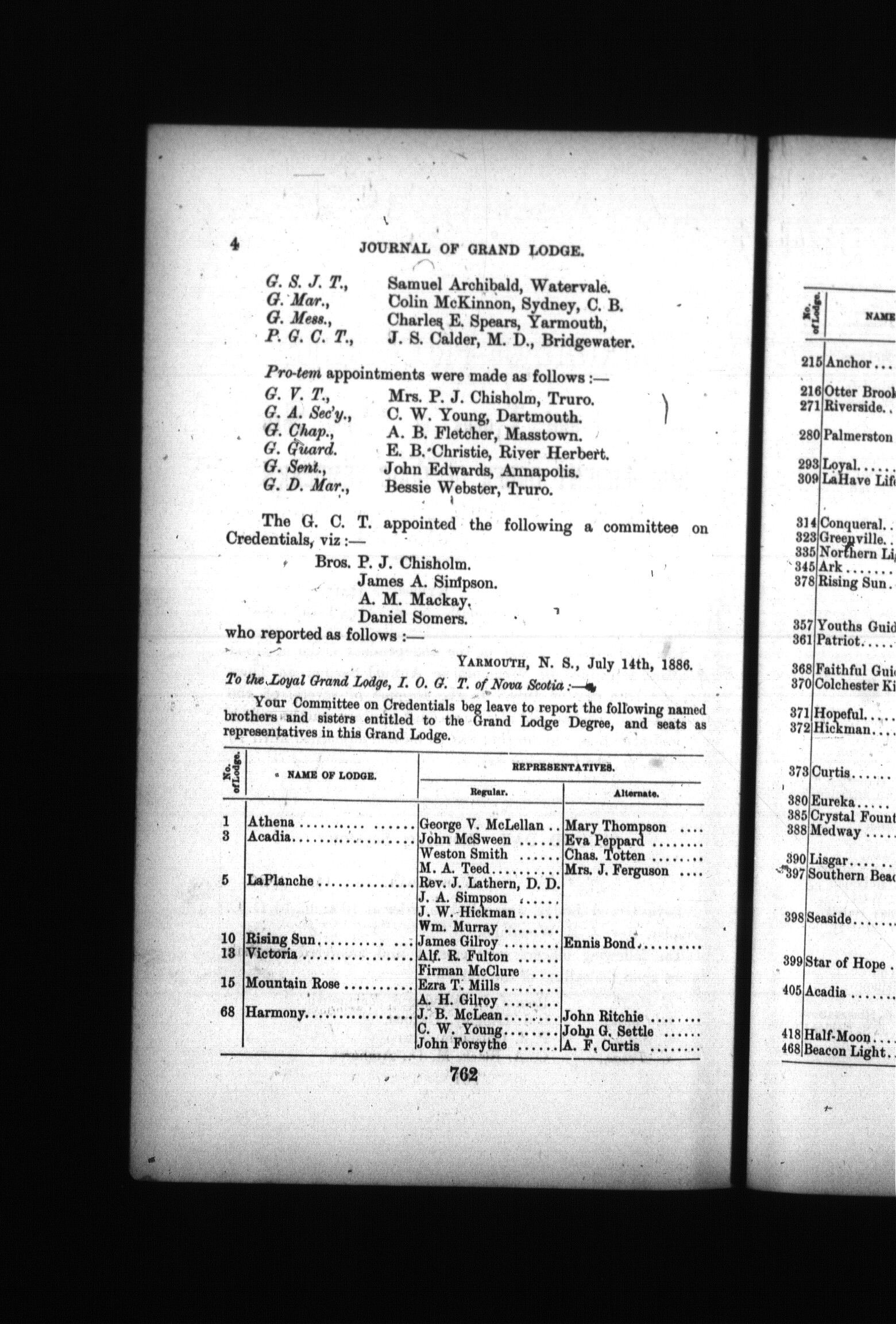 [Halifax, N.S.] : [Grand Lodge, Independent Order of Good Templars, of the province of Nova Scotia], 1886; 92 images, 0 avec recherche en texte intégral