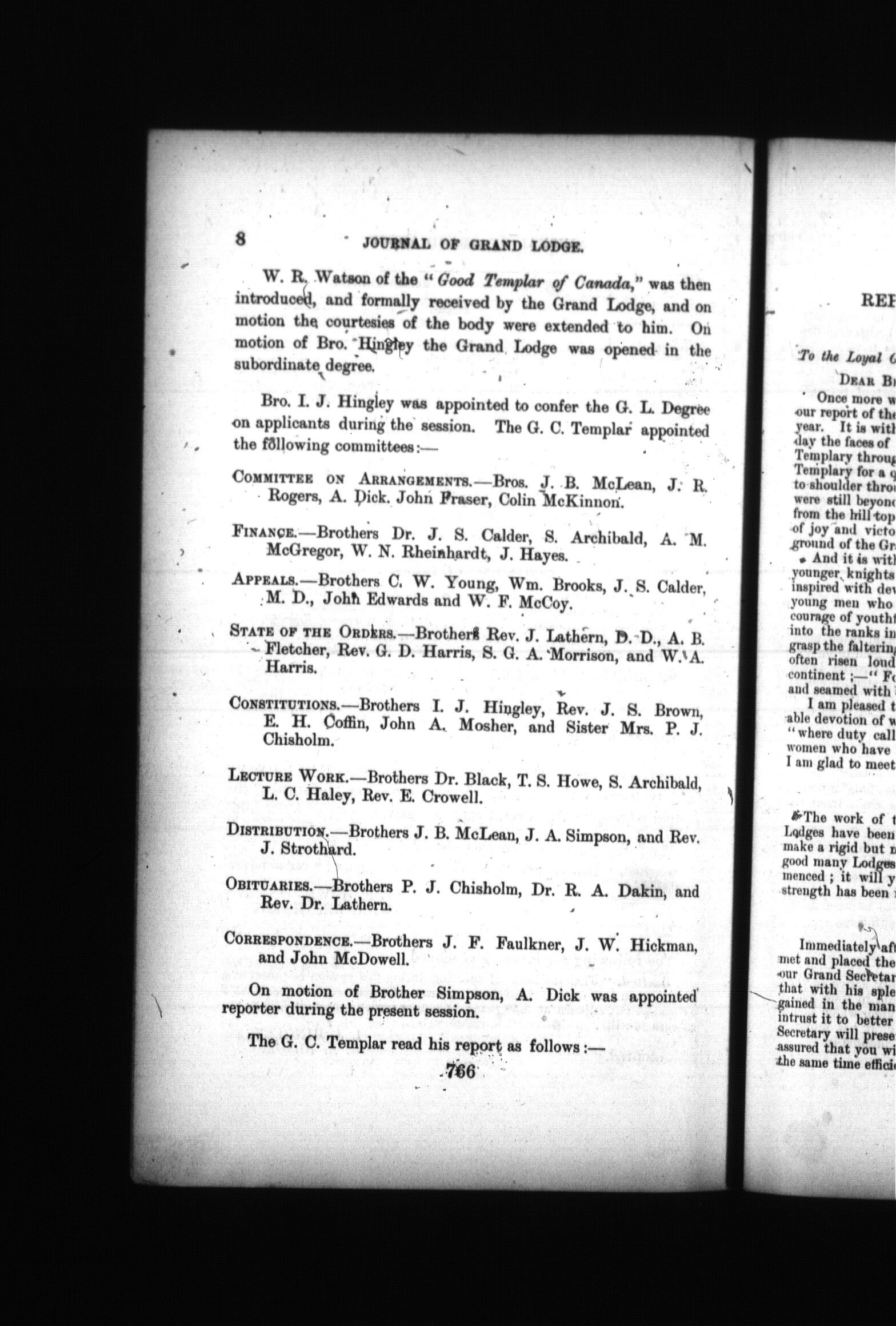 [Halifax, N.S.] : [Grand Lodge, Independent Order of Good Templars, of the province of Nova Scotia], 1886; 92 images, 0 avec recherche en texte intégral