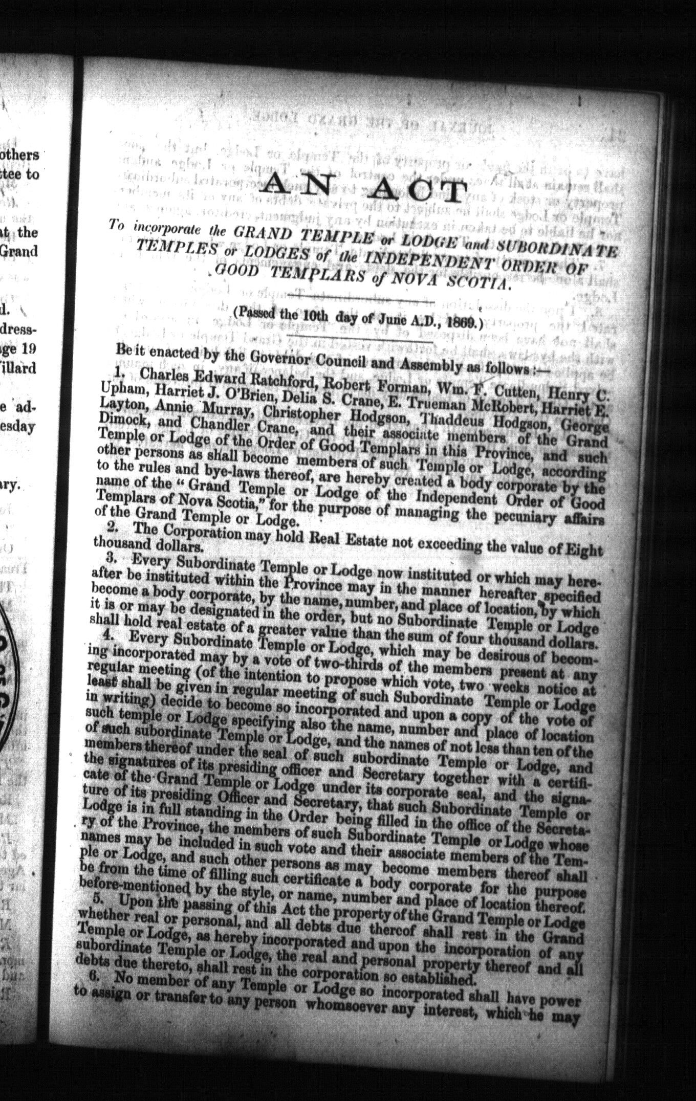 - [Halifax, N.S.] : [Grand Lodge, Independent Order of Good Templars, of the province of Nova Scotia], 1869