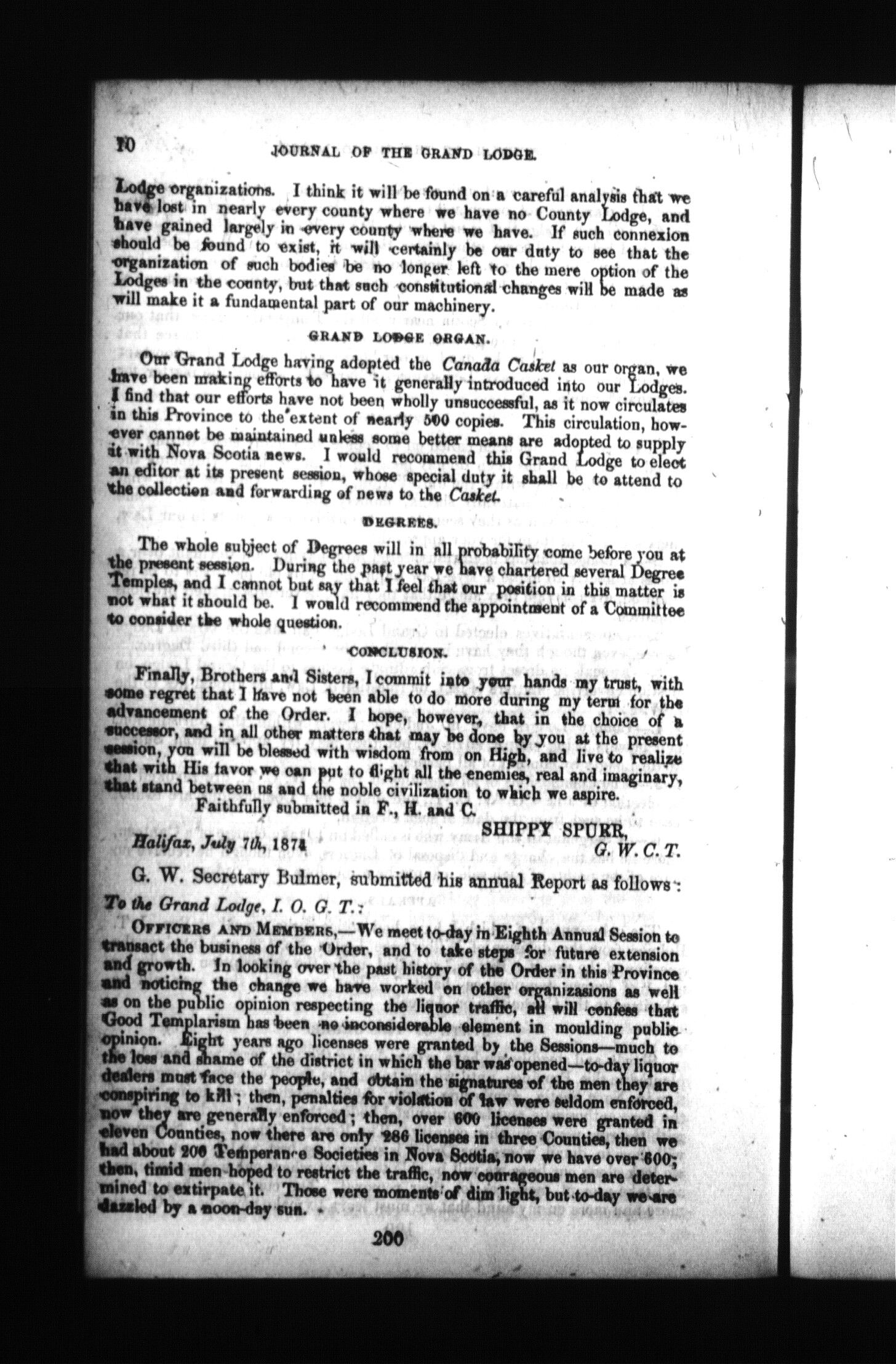 Journal of proceedings of the eighth annual session of the Grand Lodge of Nova Scotia : held in the city of Halifax, Tuesday, Wednesday & Thursday, July 7th, 8th, and 9th, 1874 / I.O.G.T.