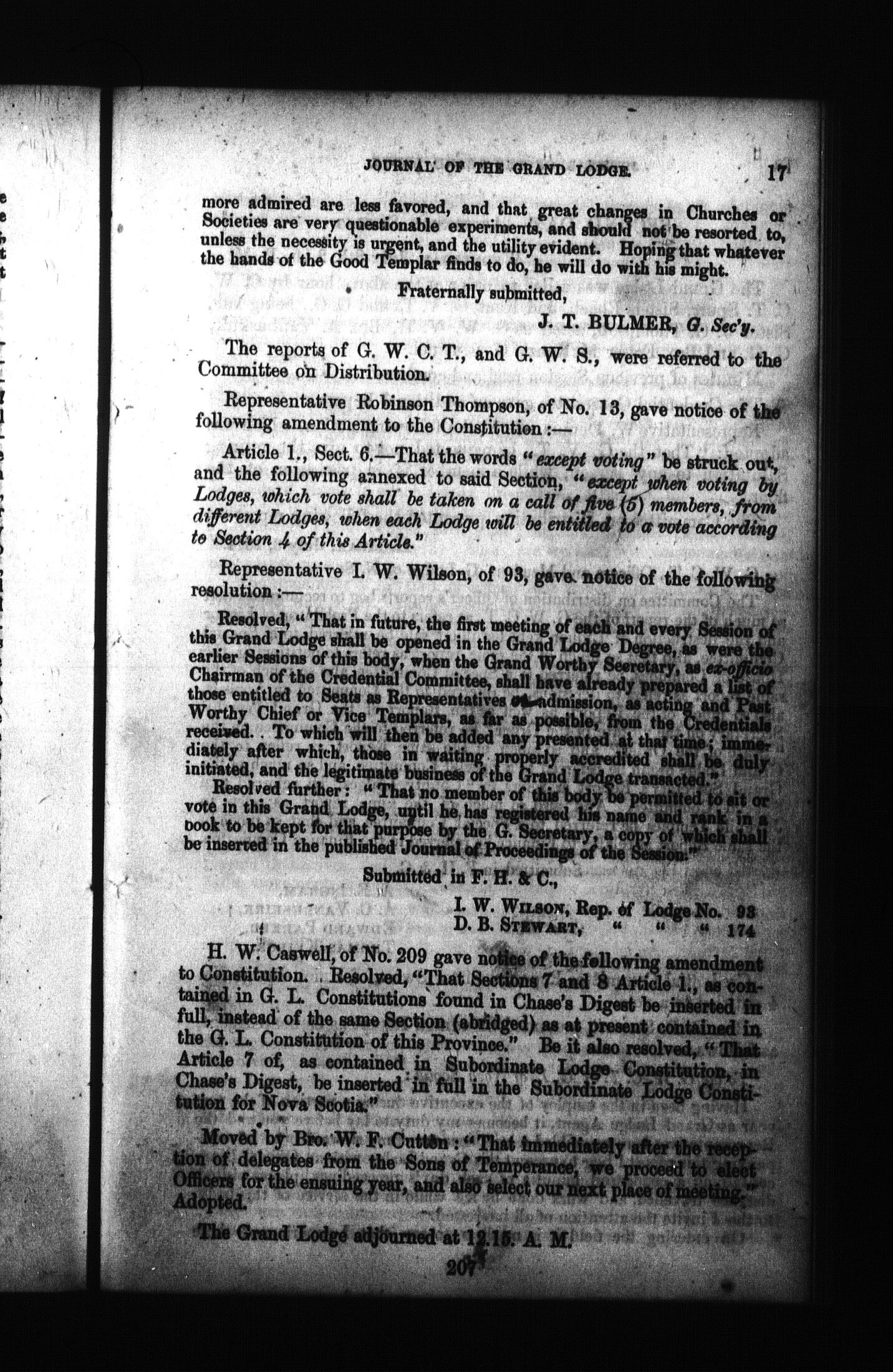 Journal of proceedings of the ... annual session of the Grand Temple, Independent Order of Good Templars, of the province of Nova Scotia : Journal of proceedings of the eighth annual session of the Grand Lodge of Nova Scotia : held in the city of Halifax, Tuesday, Wednesday & Thursday, July 7th, 8th, and 9th, 1874 / I.O.G.T.