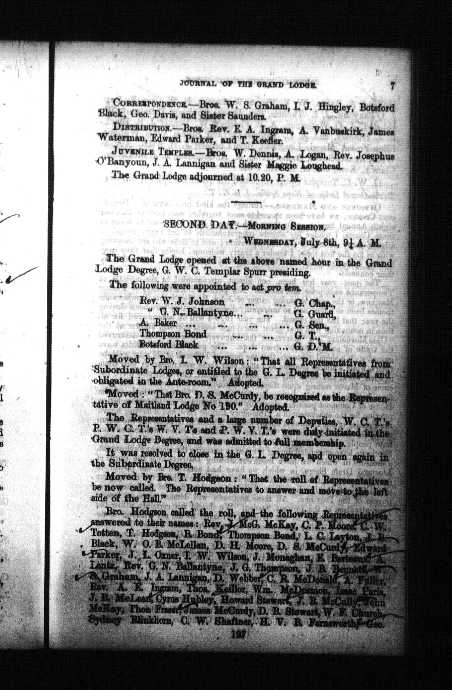 - Journal of proceedings of the eighth annual session of the Grand Lodge of Nova Scotia : held in the city of Halifax, Tuesday, Wednesday & Thursday, July 7th, 8th, and 9th, 1874 / I.O.G.T.