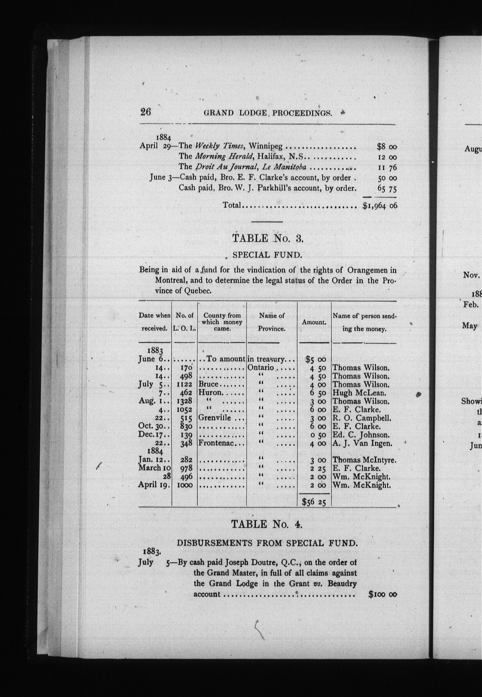 [Toronto?] : [Grand Lodge of the Loyal Orange Association of British North America], 1884