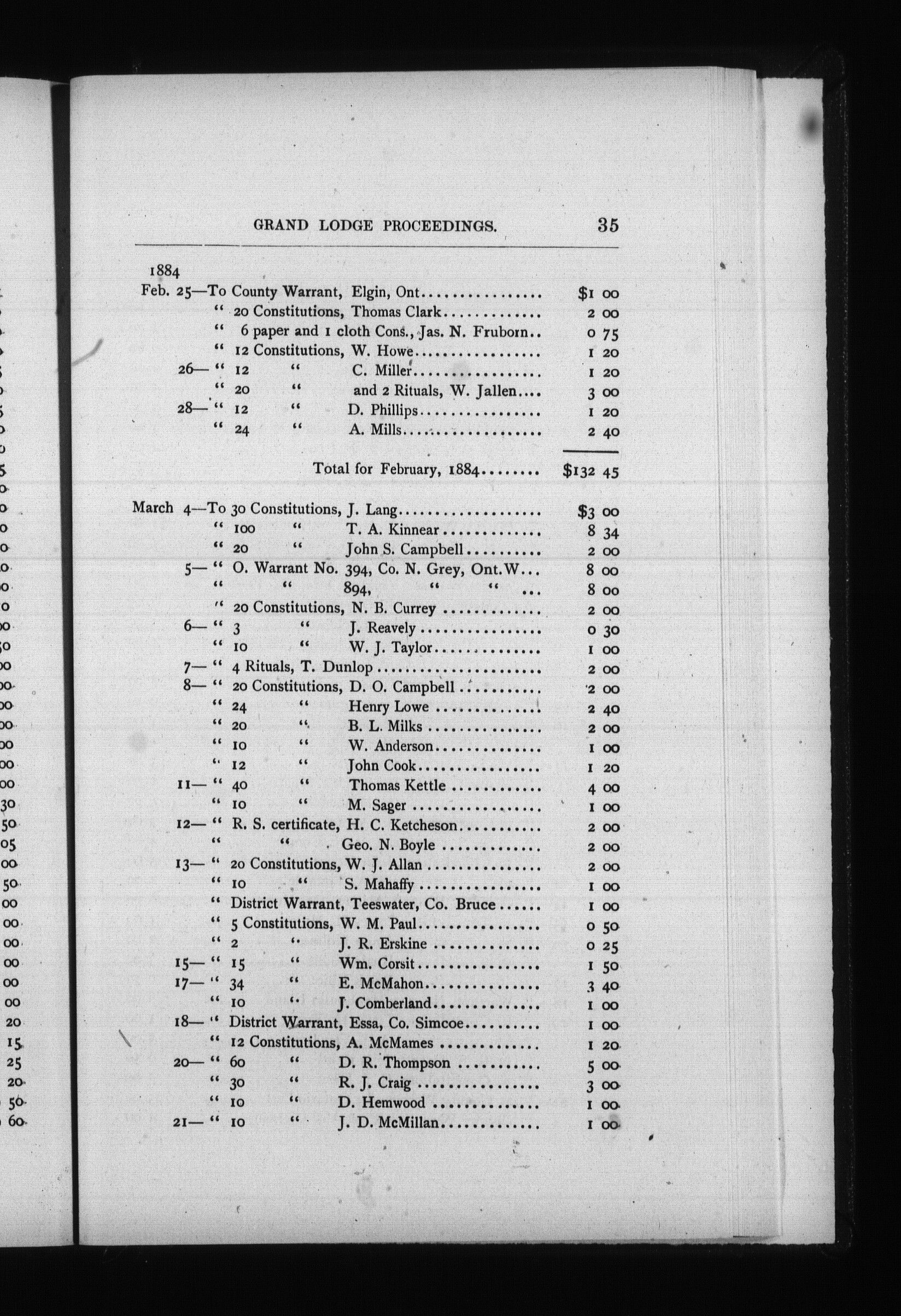 [Toronto?] : [Grand Lodge of the Loyal Orange Association of British North America], 1884