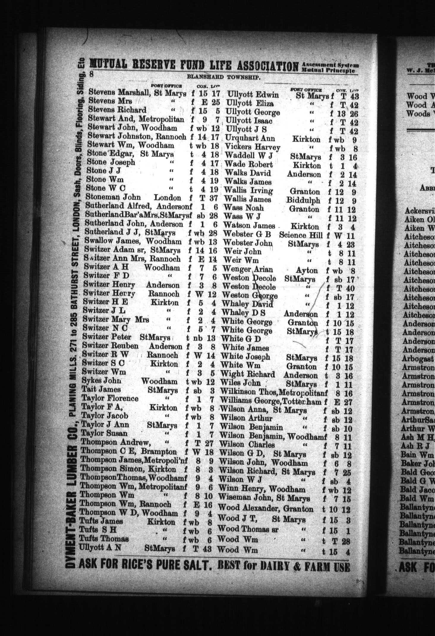 The Union Publishing Co's farmers and business directory for the counties of Huron, Middlesex and Perth, 1898 : Vol. XII (1898)