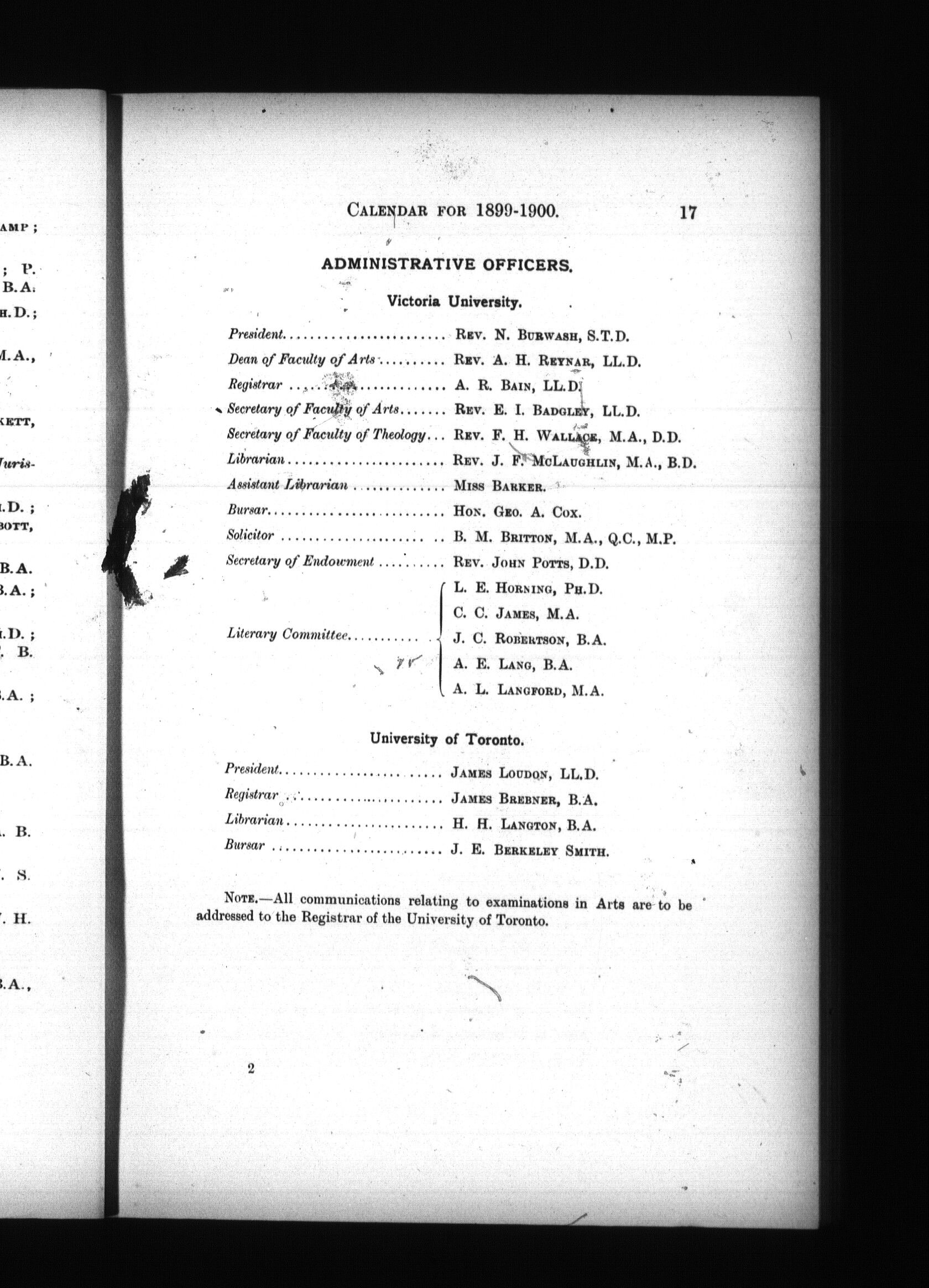 Calendar of Victoria University, Toronto, Canada : 1899/1900