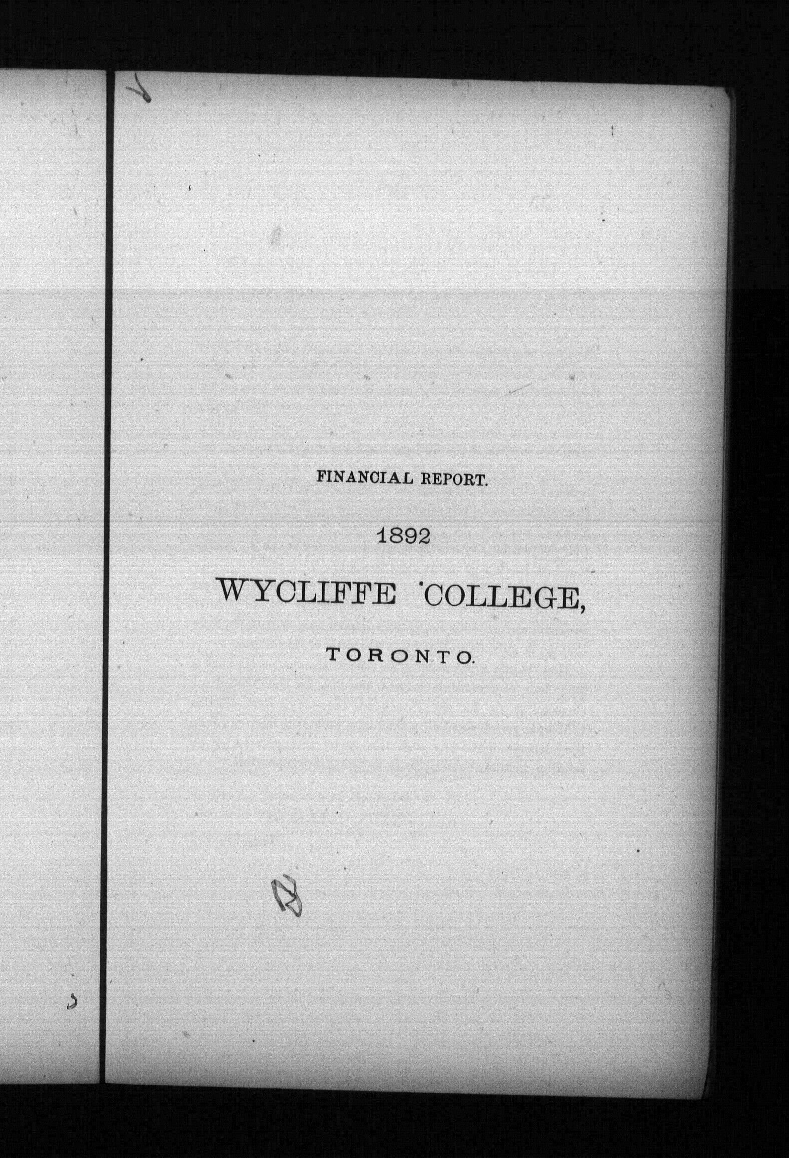 - The calendar and financial statement of Wycliffe College, University of Toronto, Toronto : 1892
