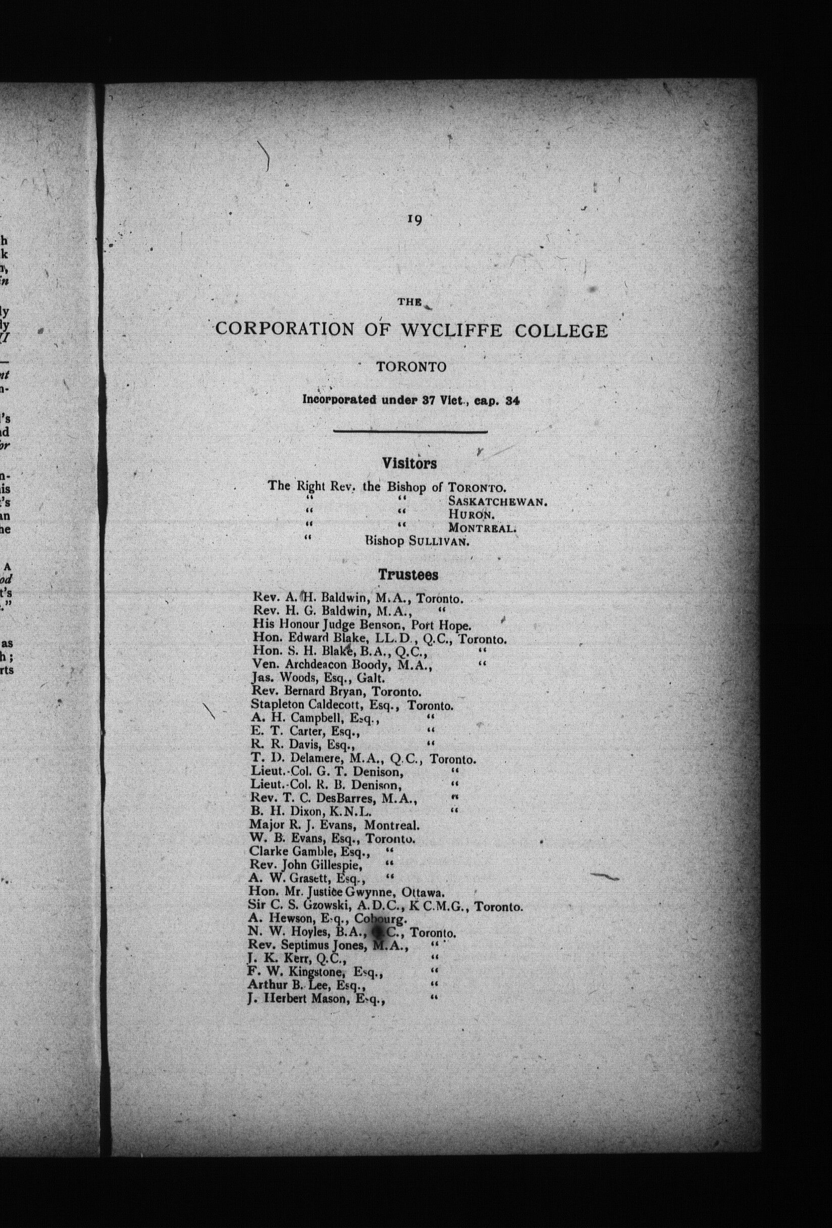 The calendar and financial statement of Wycliffe College (in affiliation with the University of Toronto), Toronto : The calendar and financial statement of Wycliffe College, University of Toronto, Toronto : 1897