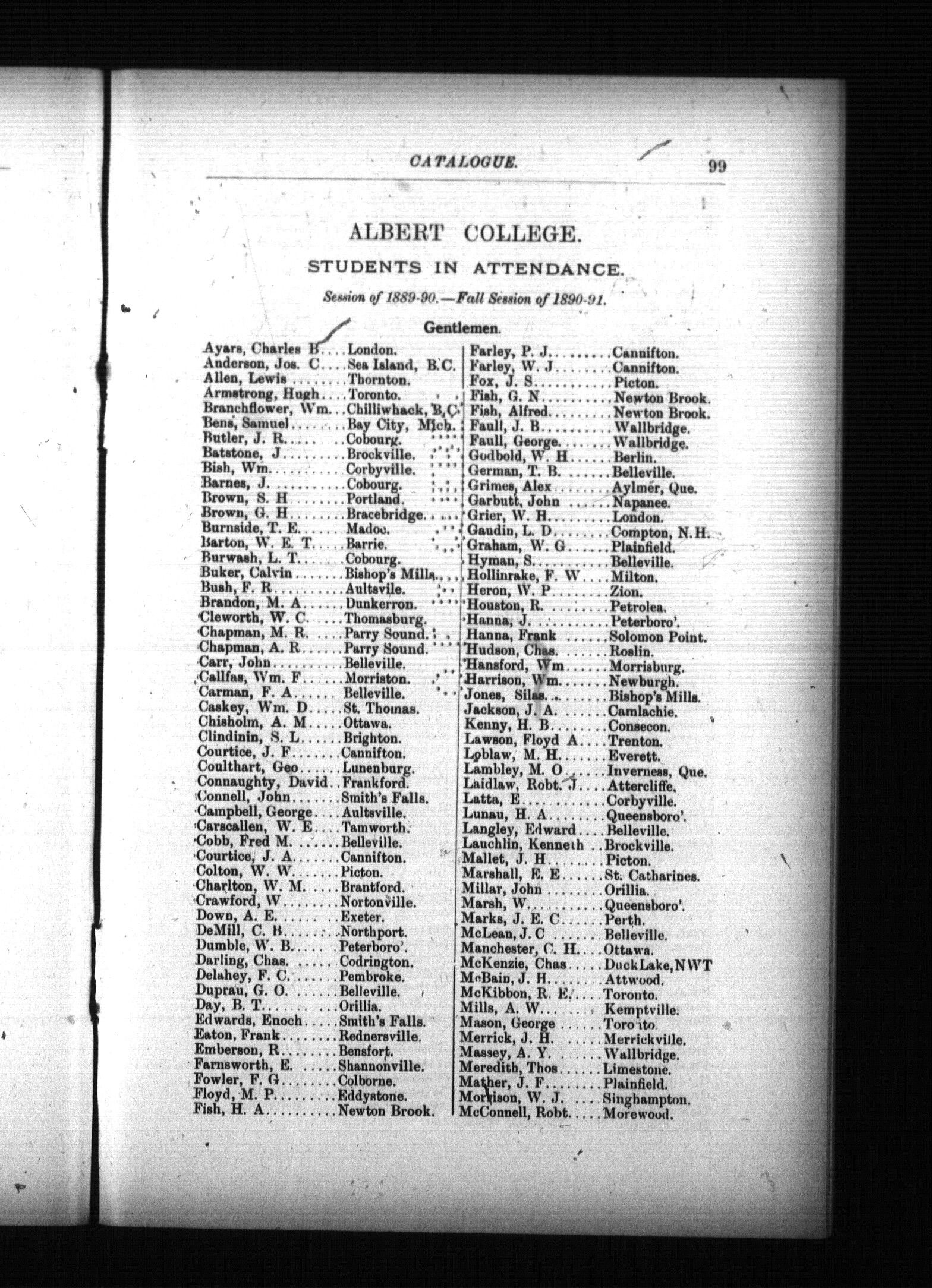 - Calendar of Victoria University, Cobourg, Canada : 1891/92