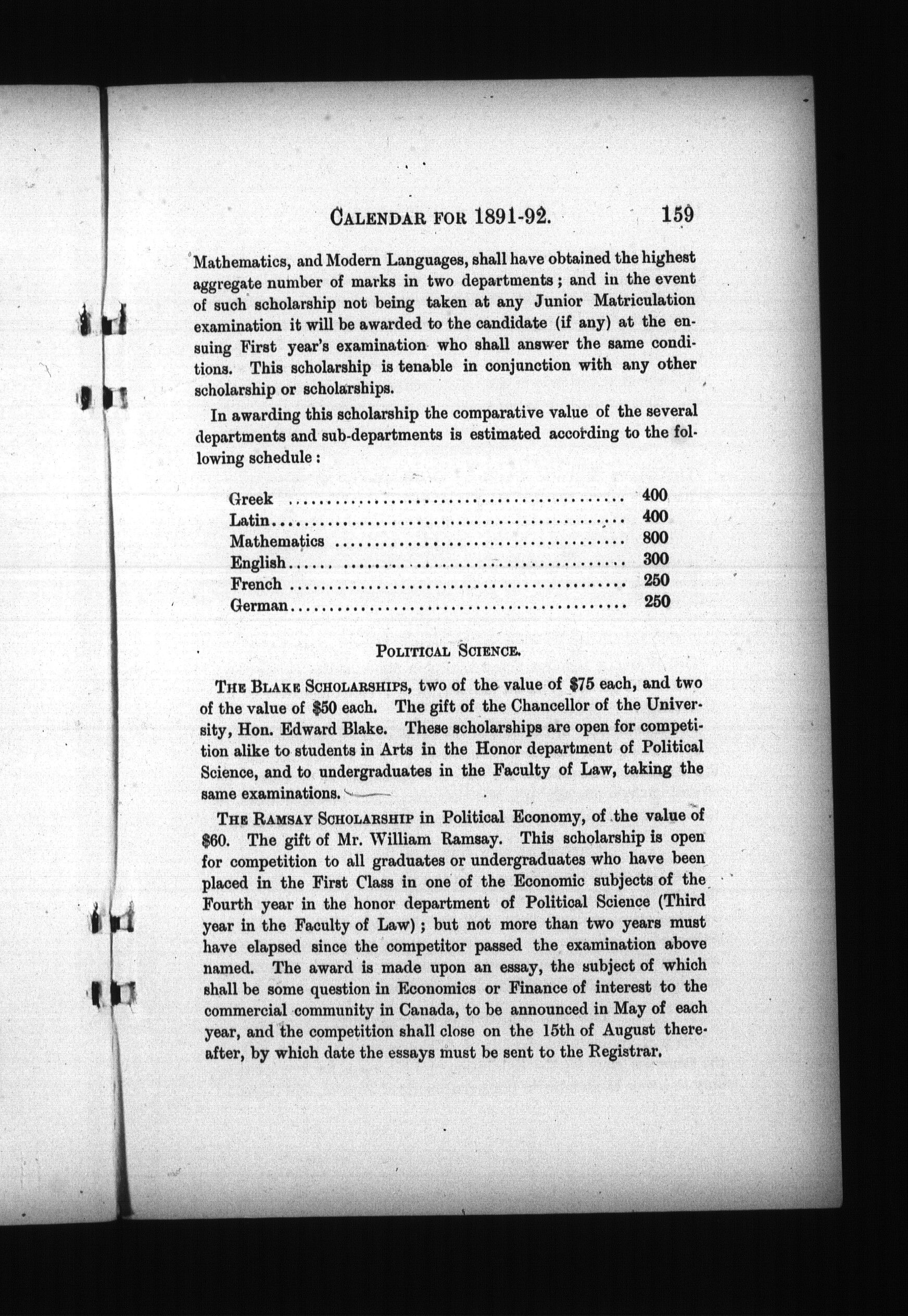 - Extracts from the calendar of the University of Toronto for the year 1891-2 : 1891/2