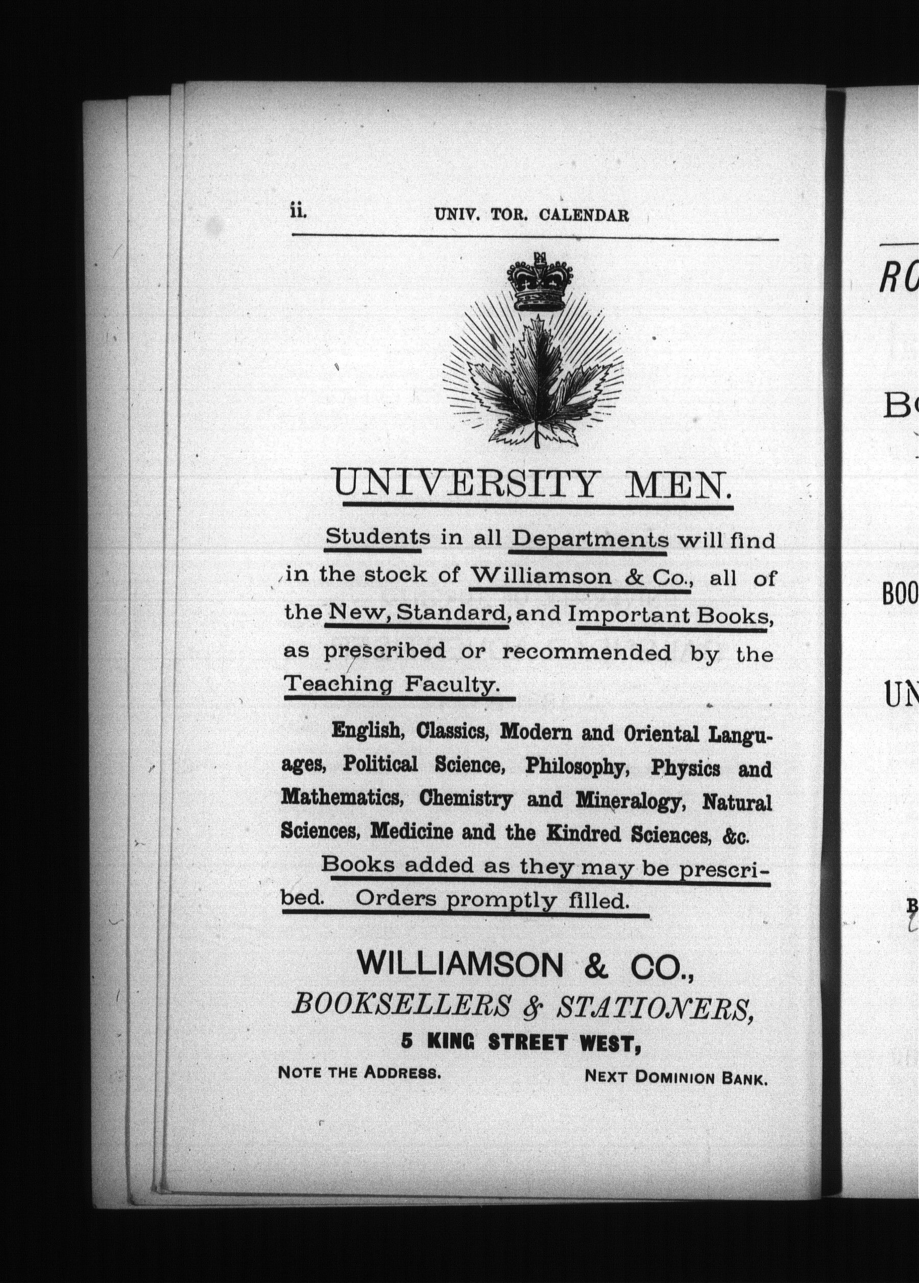 - Extracts from the calendar of the University of Toronto for the year 1891-2 : 1891/2