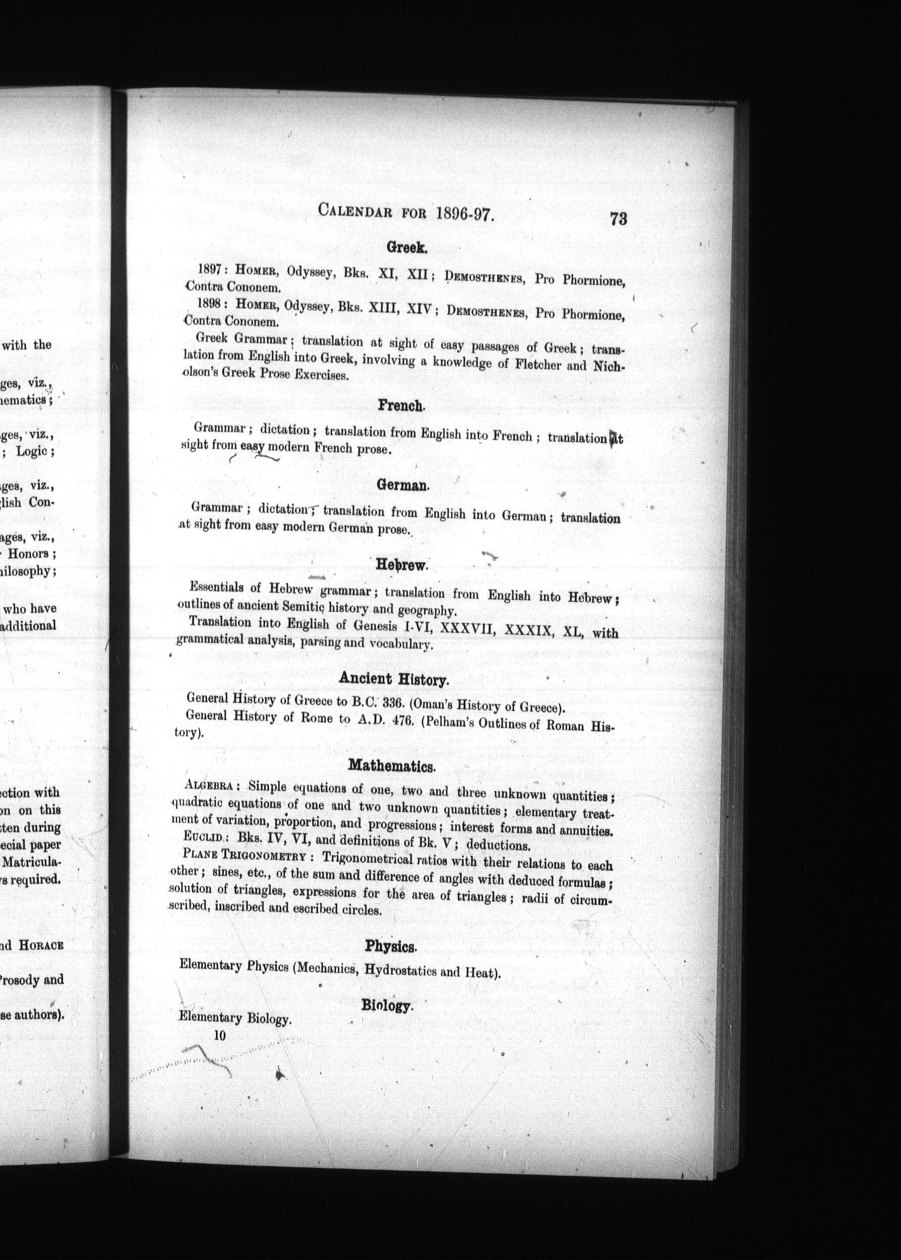 - Extracts from the calendar of the University of Toronto and University College for the year 1896-97 : 1896/97