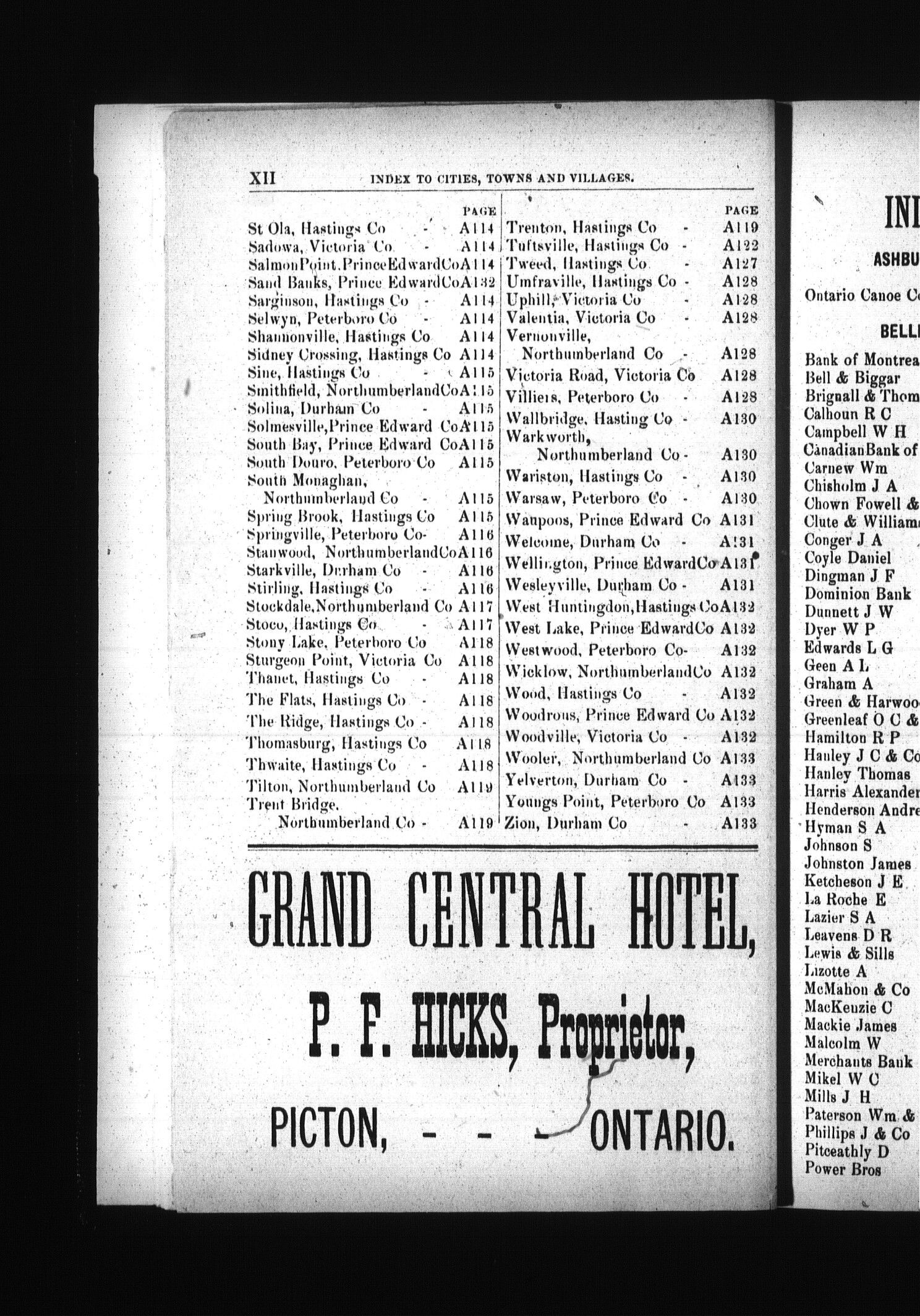 The Union Publishing Co's (of Ingersoll) farmers and business directory for the counties of Durham, Hastings, Northumberland, Peterboro, Prince Edward and Victoria, for 1892 : Vol. VI (1892)