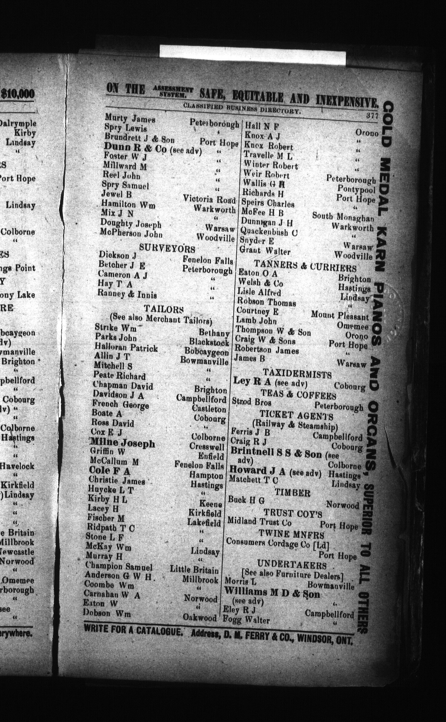 The Union Publishing Co's (of Ingersoll) farmers and business directory for the counties of Durham, Haliburton, Northumberland, Peterboro' and Victoria, for 1896 : Vol. IX (1896)