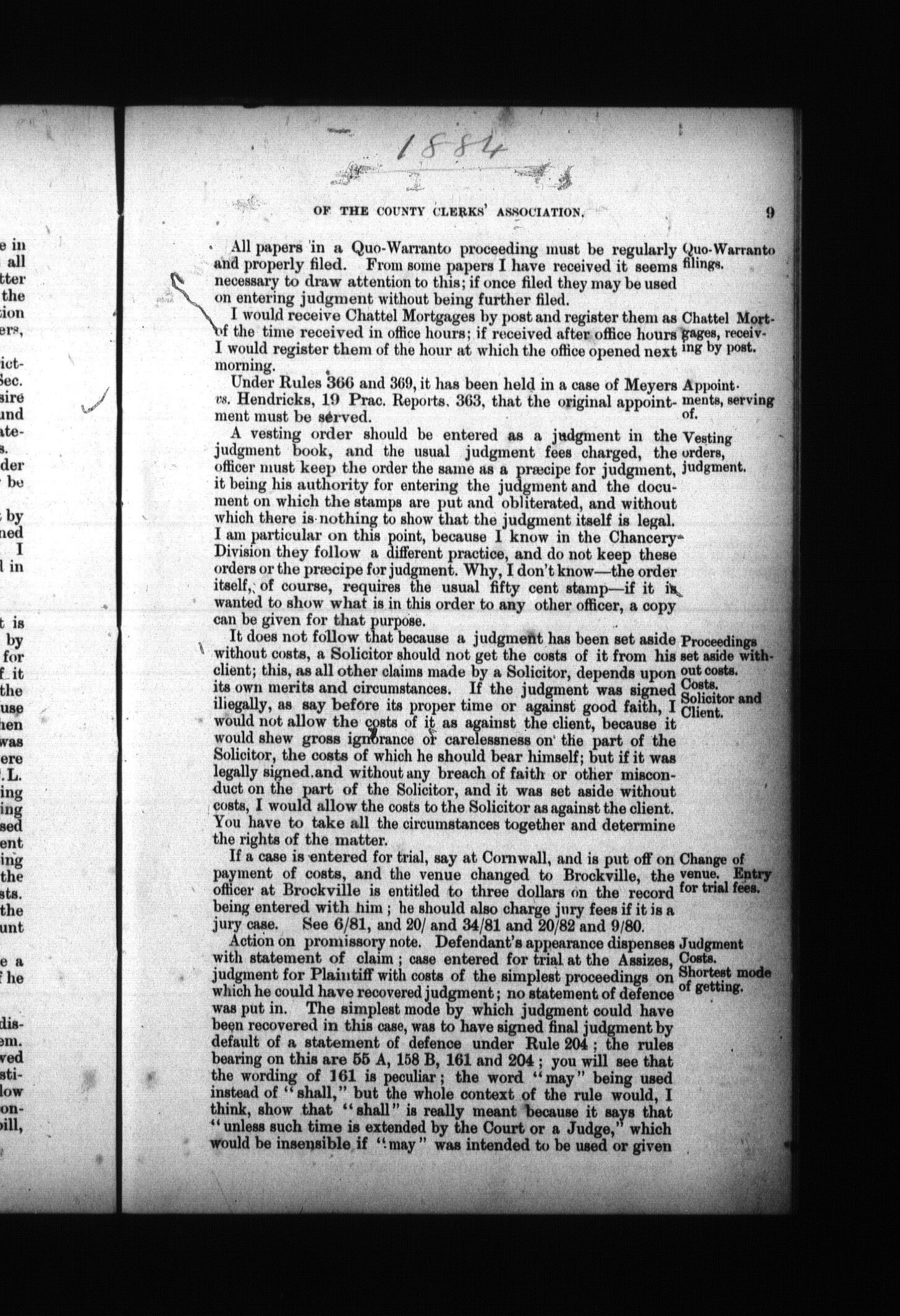 Aide [Toronto?] : [County Court Clerks' Association], 1885; 22 images avec recherche en texte intégral