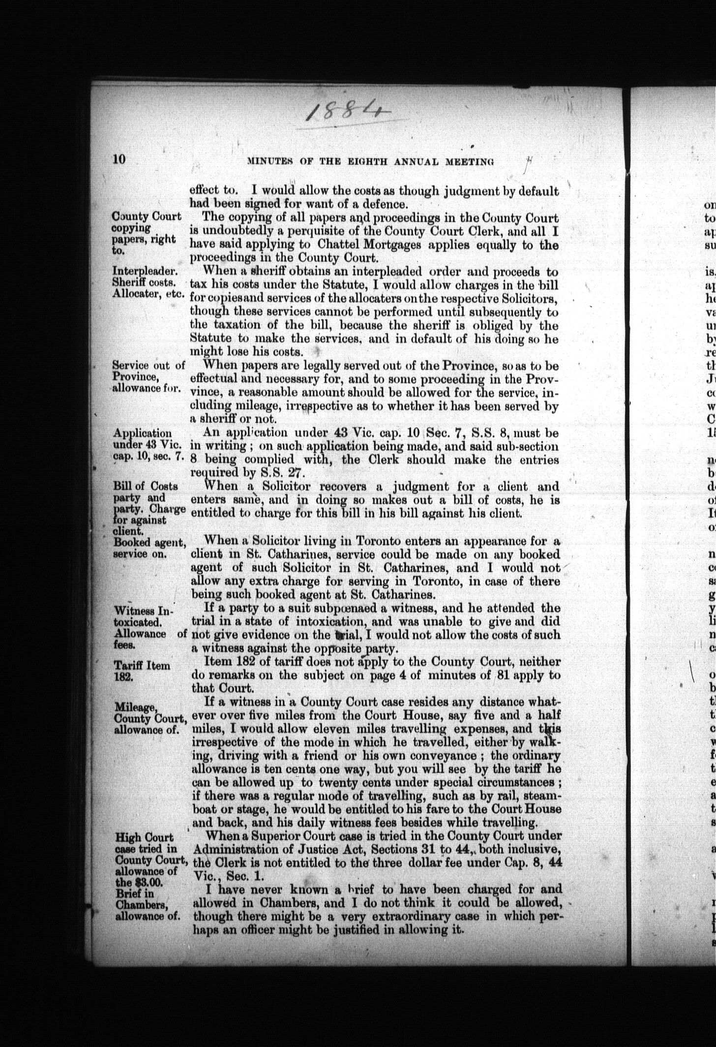 Minutes of meeting of County Court Clerks Association : Minutes of meeting of the County Court Clerks' Association : Eighth (1884)