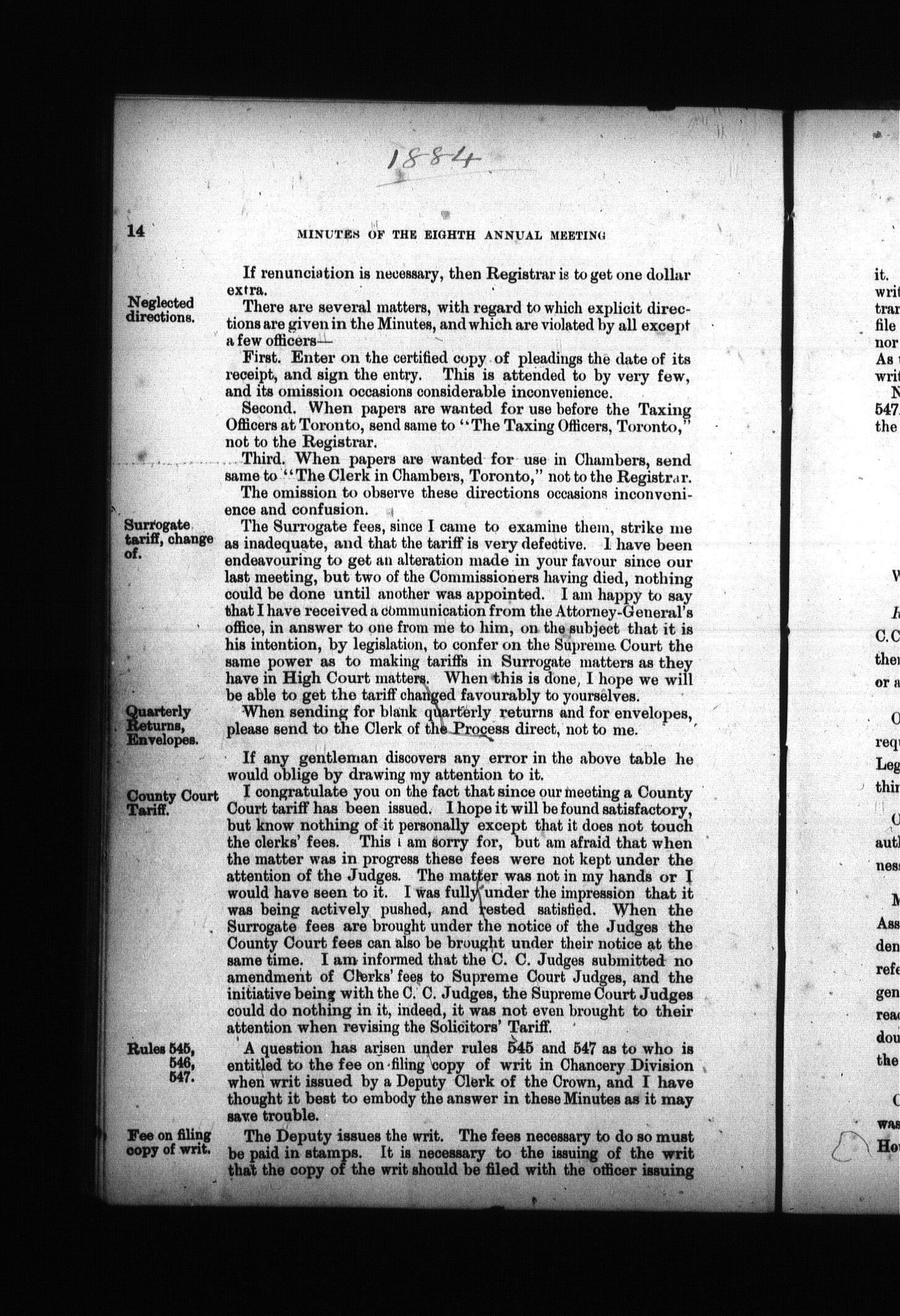 Aide [Toronto?] : [County Court Clerks' Association], 1885; 22 images avec recherche en texte intégral