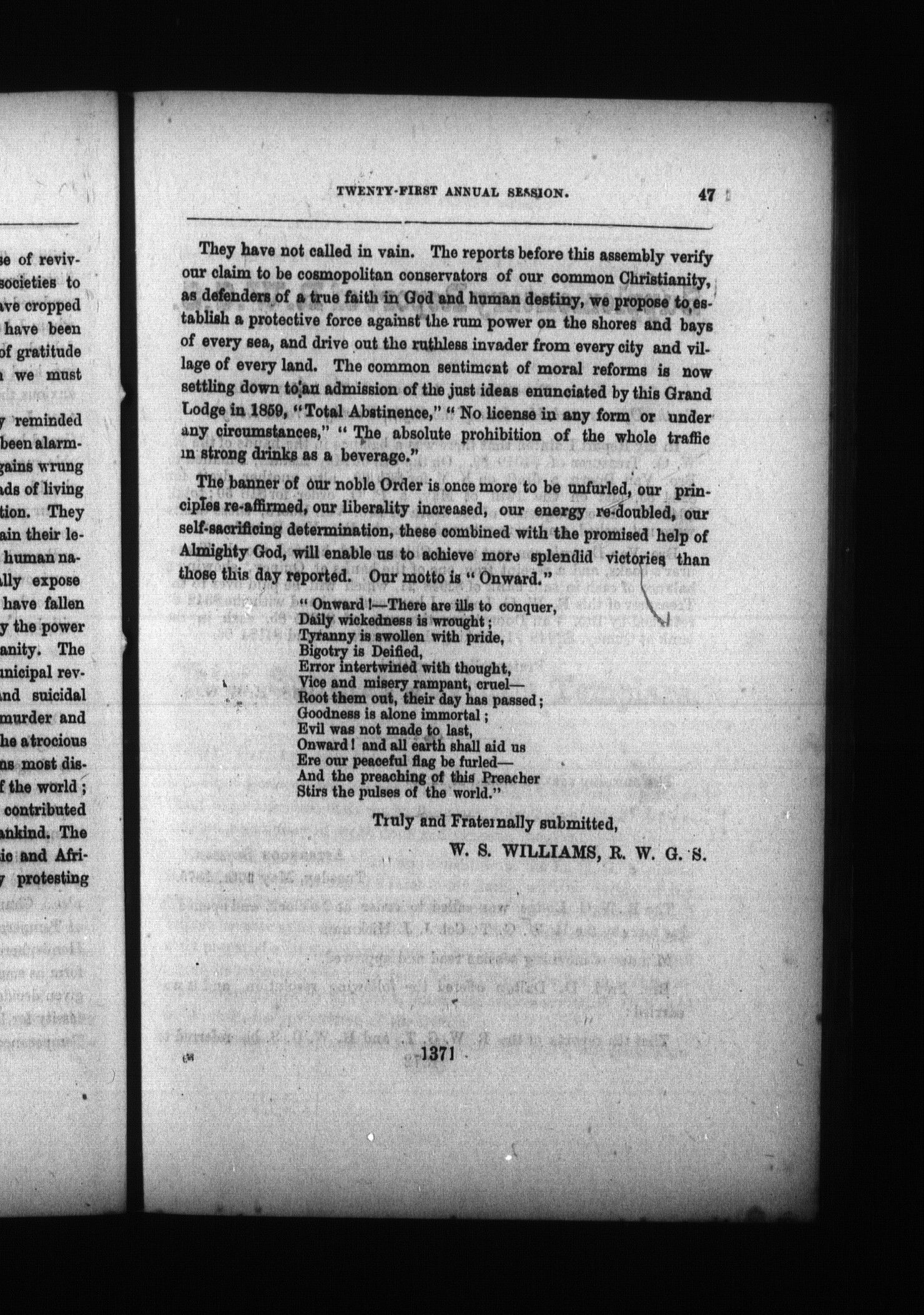 [Place of publication not identified] : [Grand Lodge, Independent Order of Good Templars of the World], 1875; 132 images with full-text search