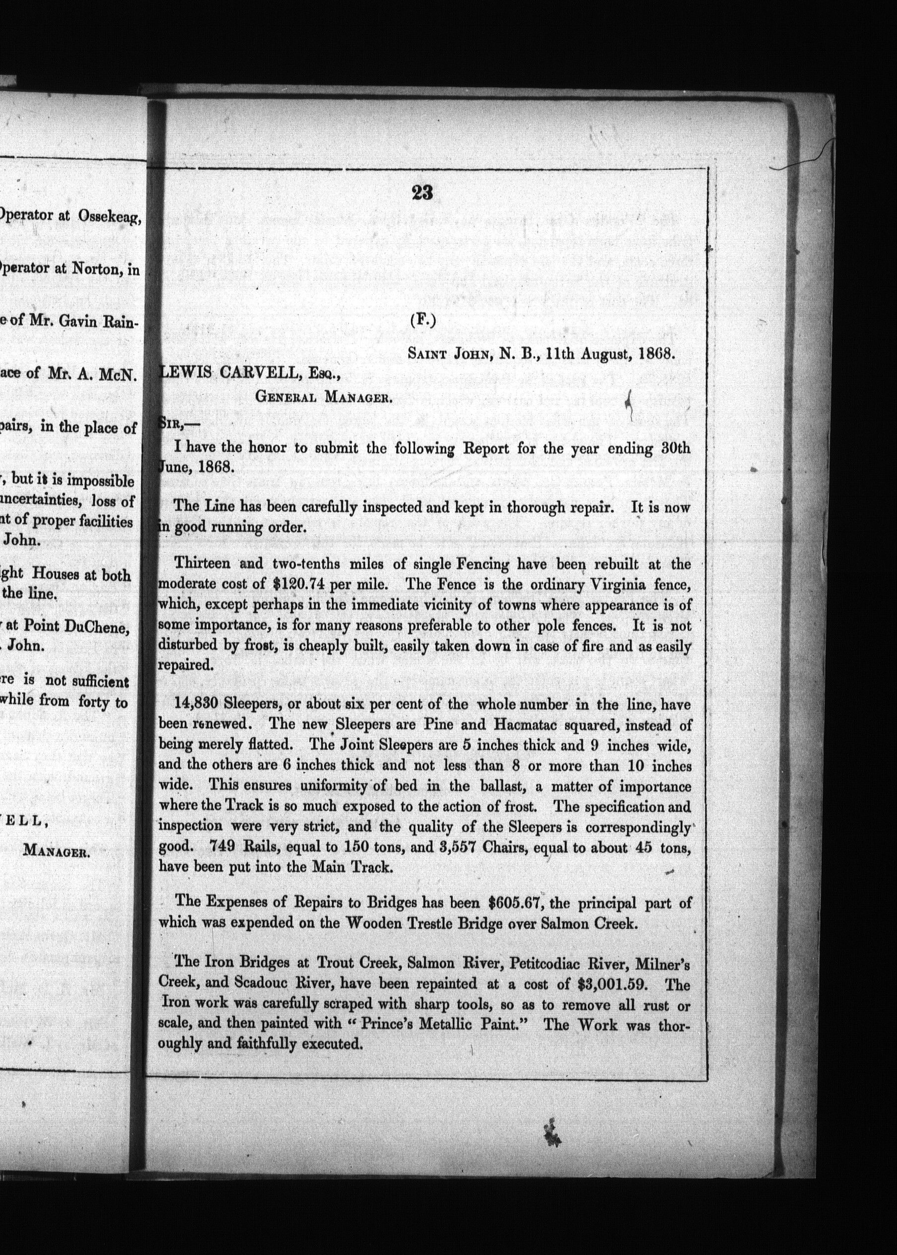 - Report of the manager of the European and North American Railway for the year ending 30th June, 1868 : 1868
