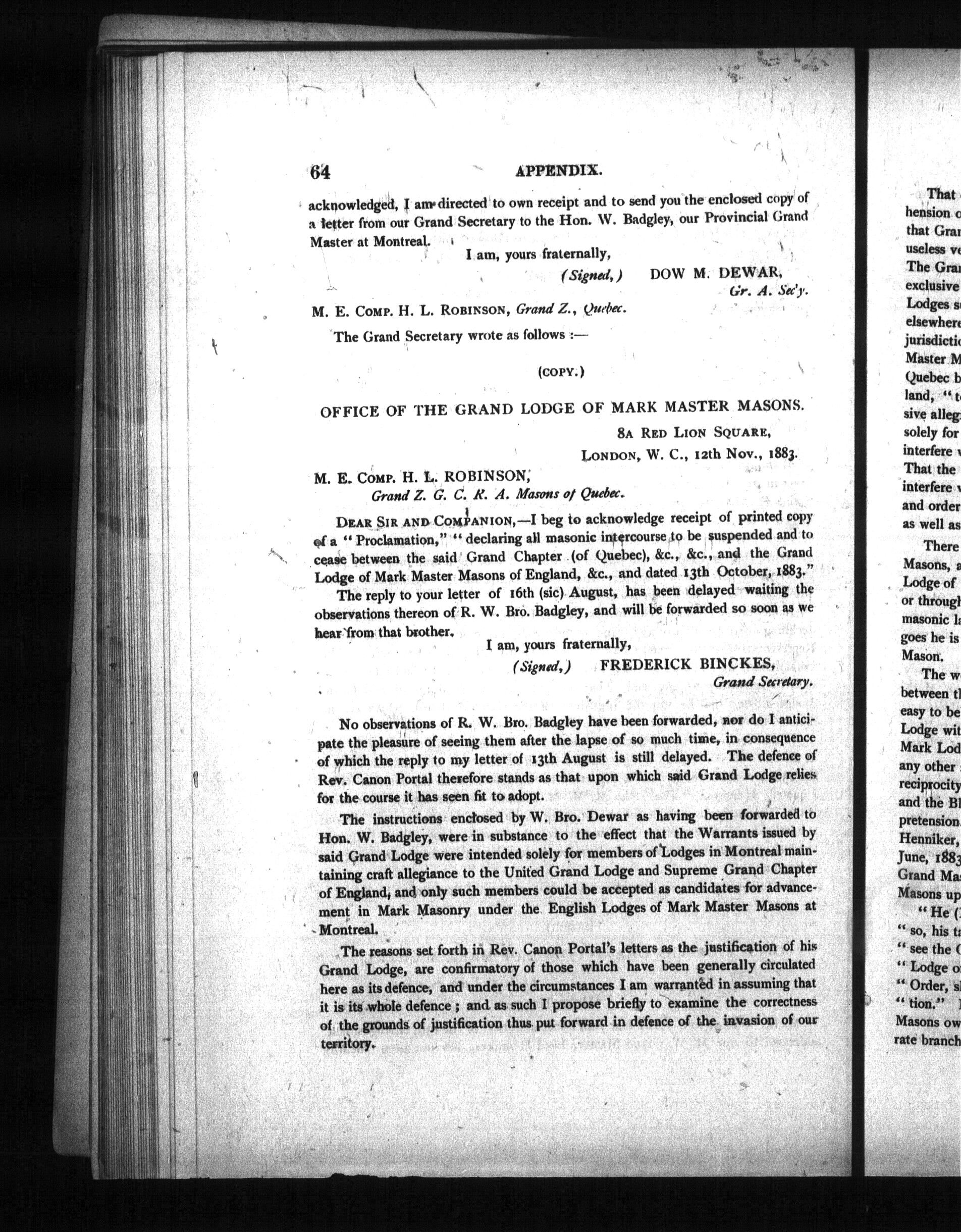 [Montréal] : [Grand Chapter of Royal Arch Masons of Quebec], 1884; 180 images with full-text search
