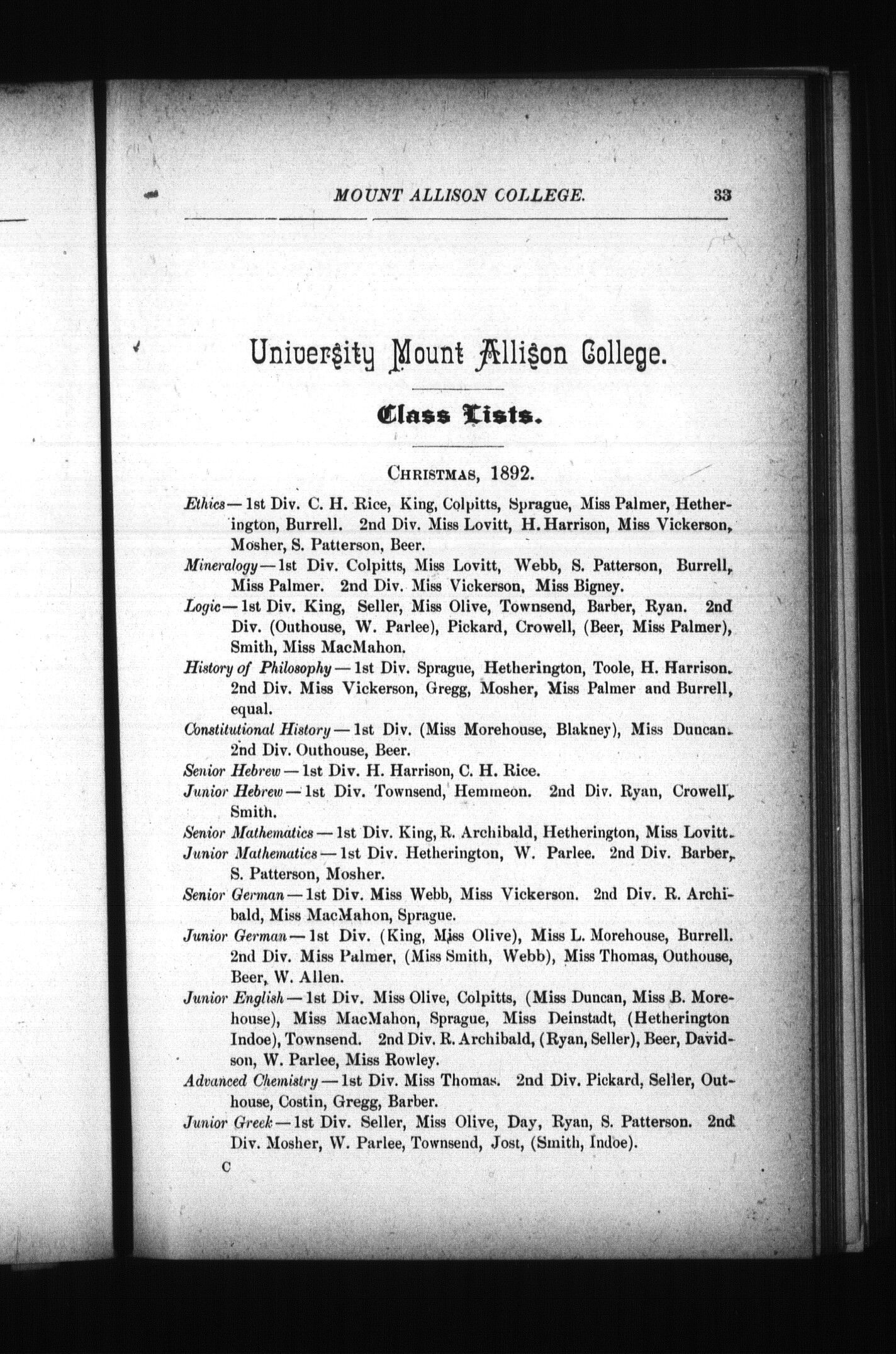 [Sackville, N.B.] : [University of Mount Allison College], 1893