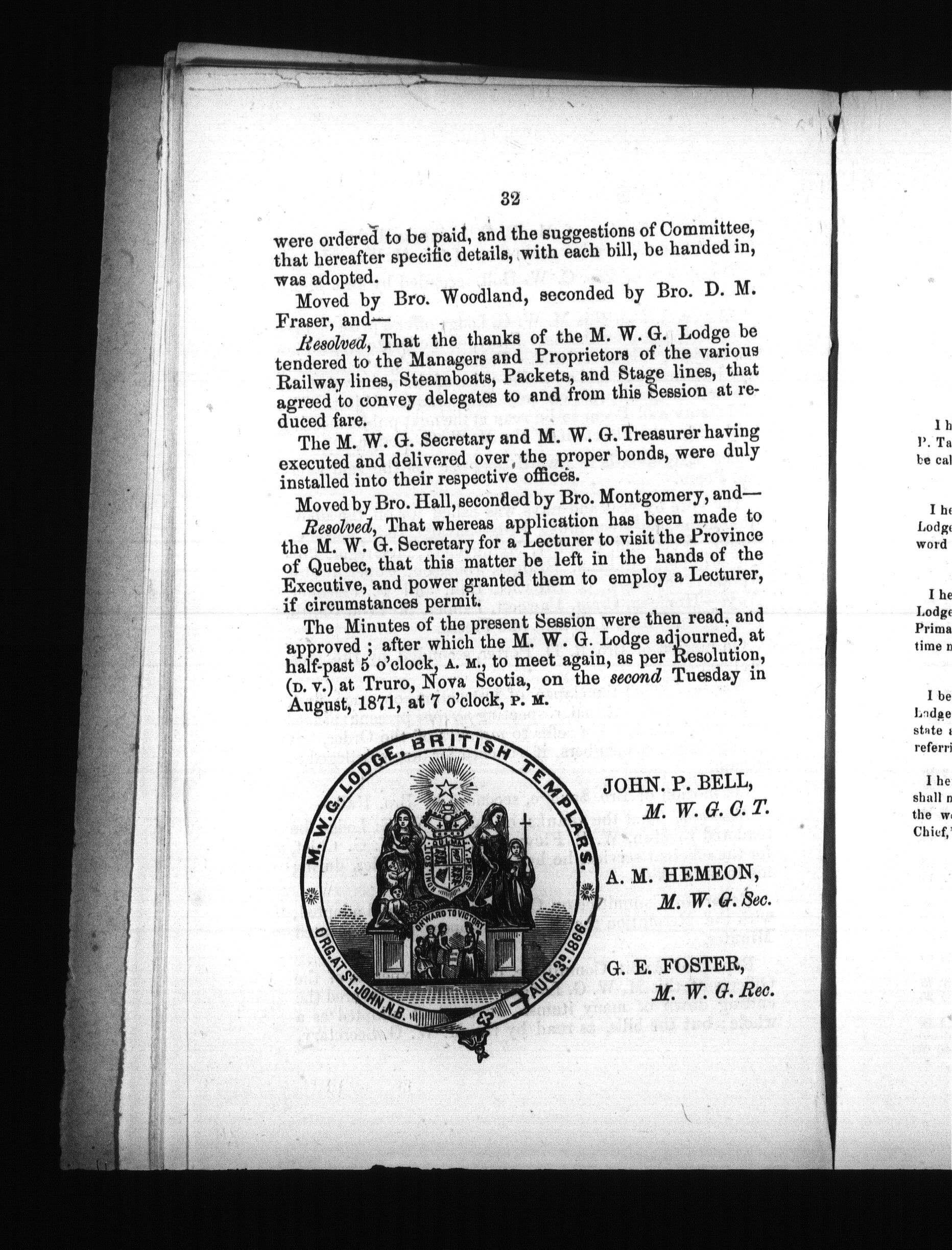 Aide [New Brunswick] : [Most Worthy Grand Lodge, British Templars], 1871; 39 images avec recherche en texte intégral