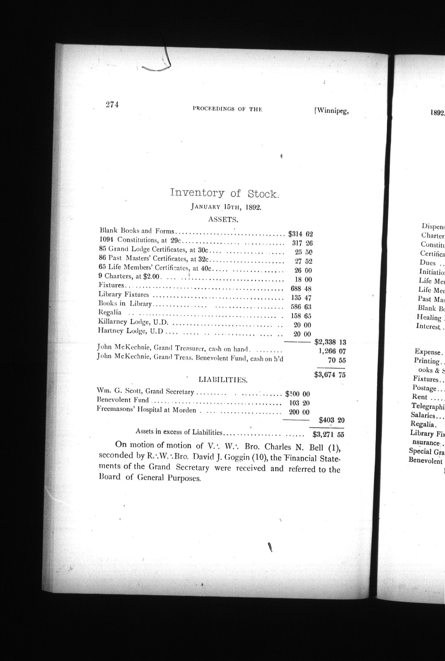 [Winnipeg?] : [Grand Lodge of Manitoba], [1892]