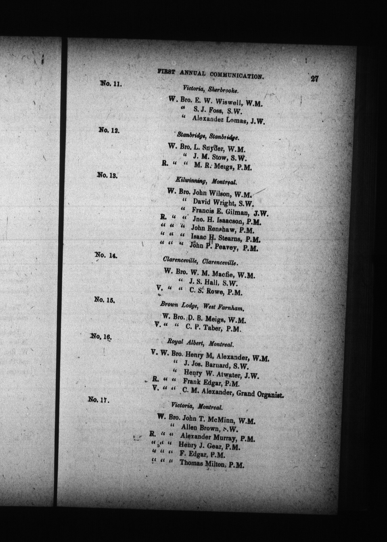 - Proceedings of the Grand Lodge of Quebec, Ancient Free and Accepted Masons ... at its first annual communication : First (1870)