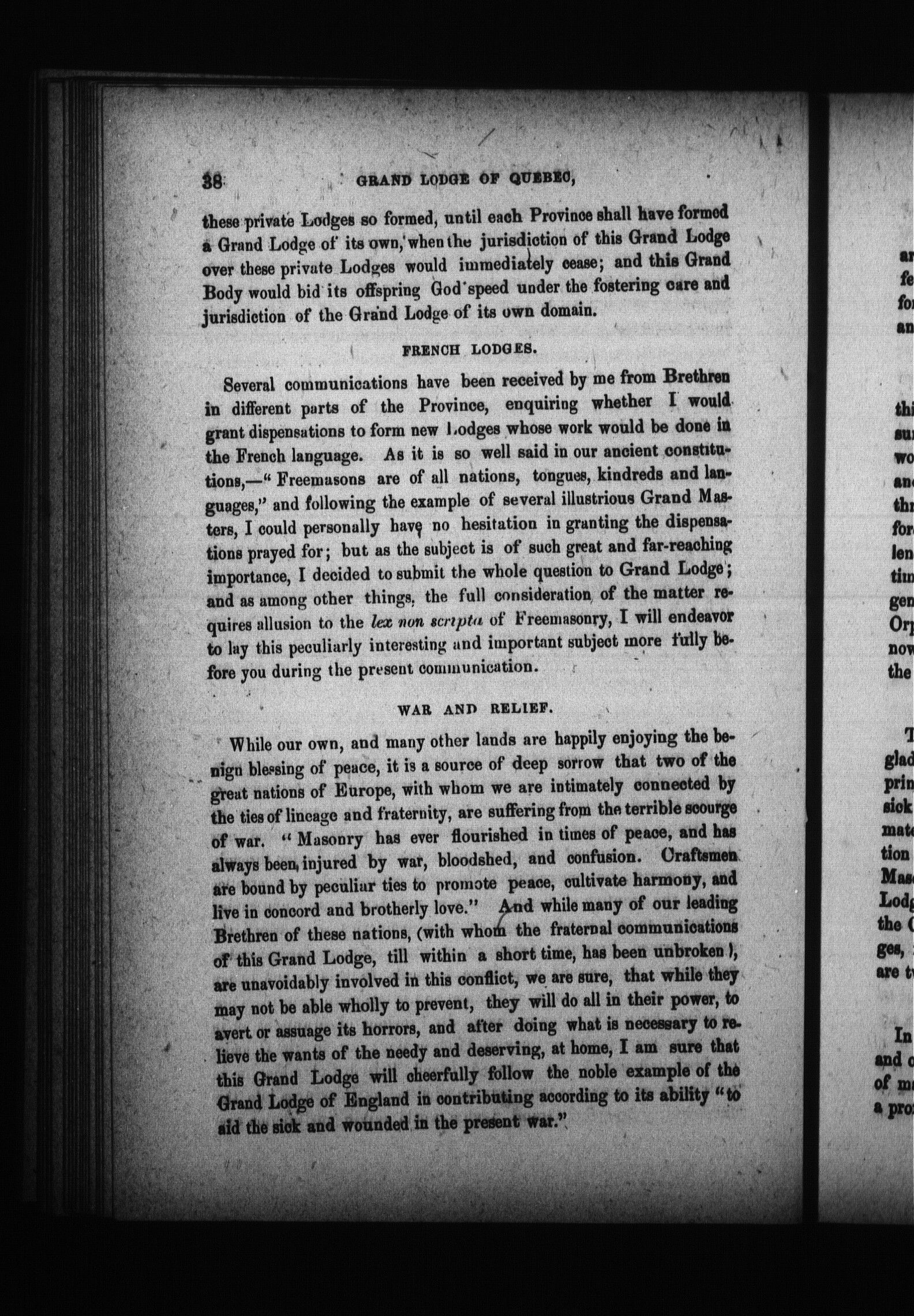 [Montréal?] : [Grand Lodge of Quebec, Ancient Free and Accepted Masons], 5870 [1870]; 87 images, 86 avec recherche en texte intégral