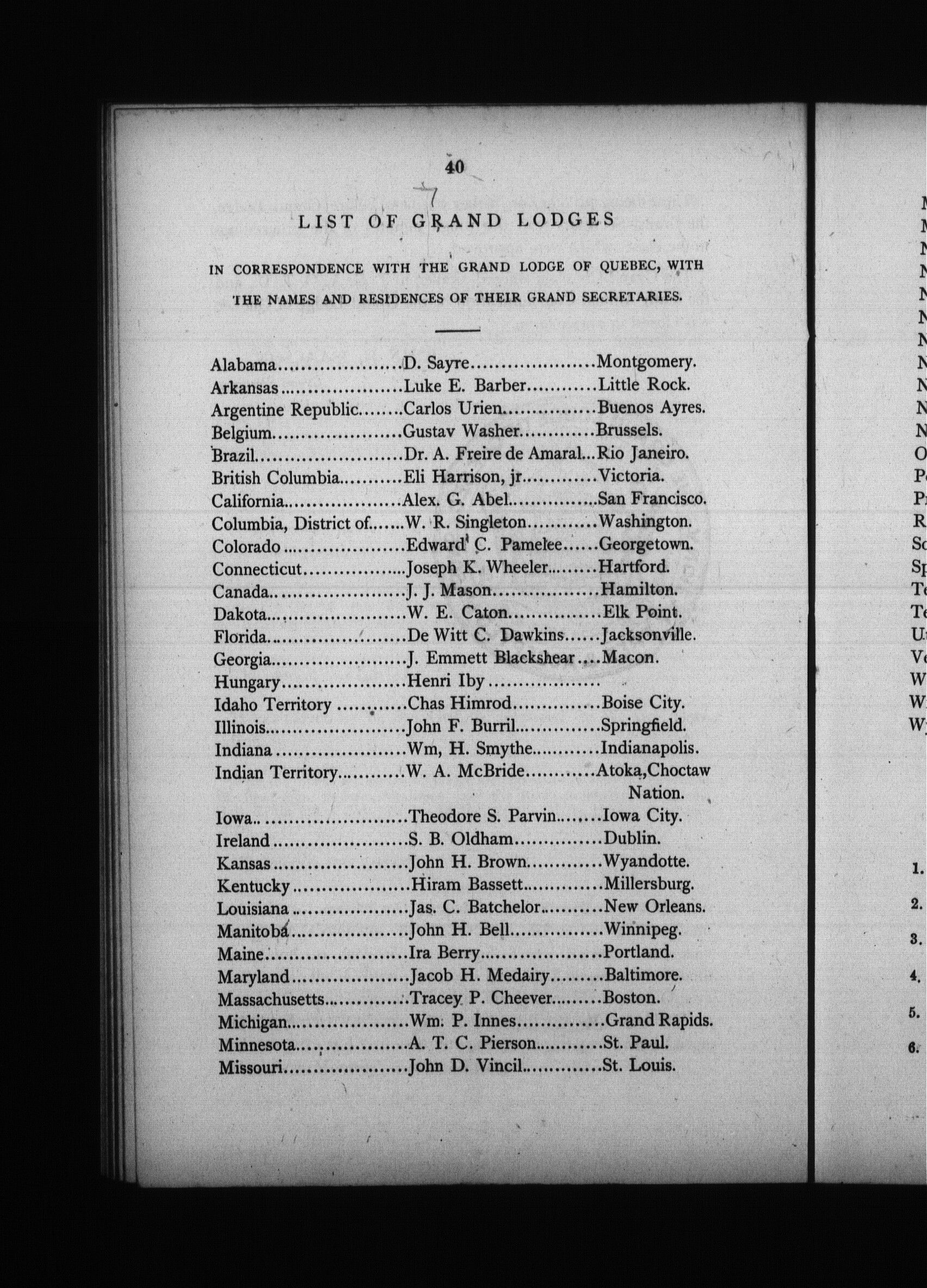 [Montréal?] : [Grand Lodge of Quebec, Ancient Free and Accepted Masons], 5879 [1879]