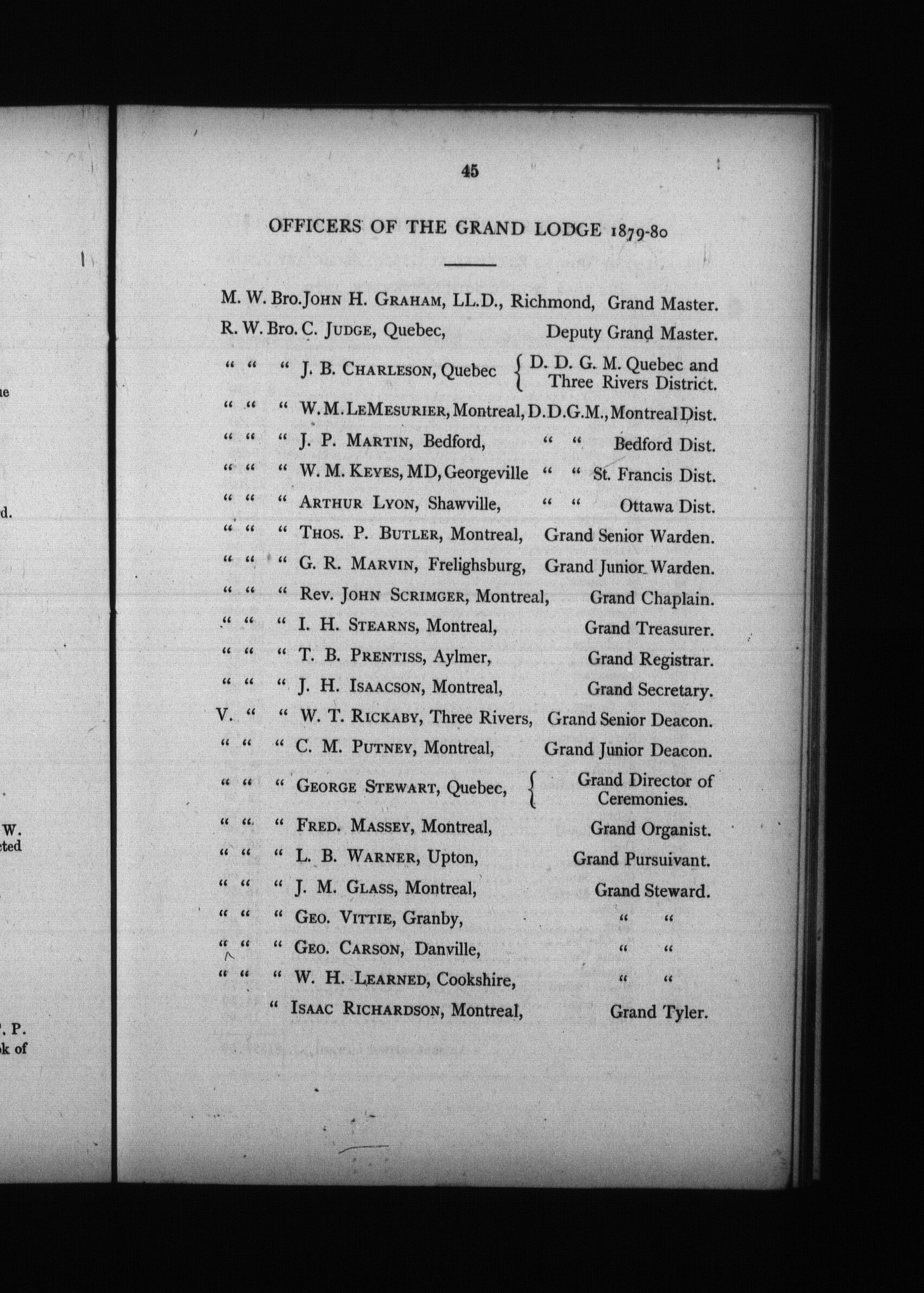 [Montréal?] : [Grand Lodge of Quebec, Ancient Free and Accepted Masons], 5879 [1879]