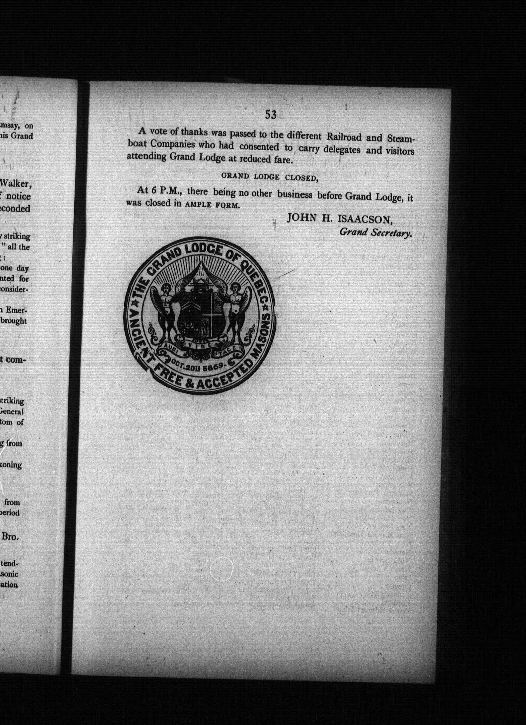 [Montréal?] : [Grand Lodge of Quebec, Ancient Free and Accepted Masons], 1880; 74 images avec recherche en texte intégral