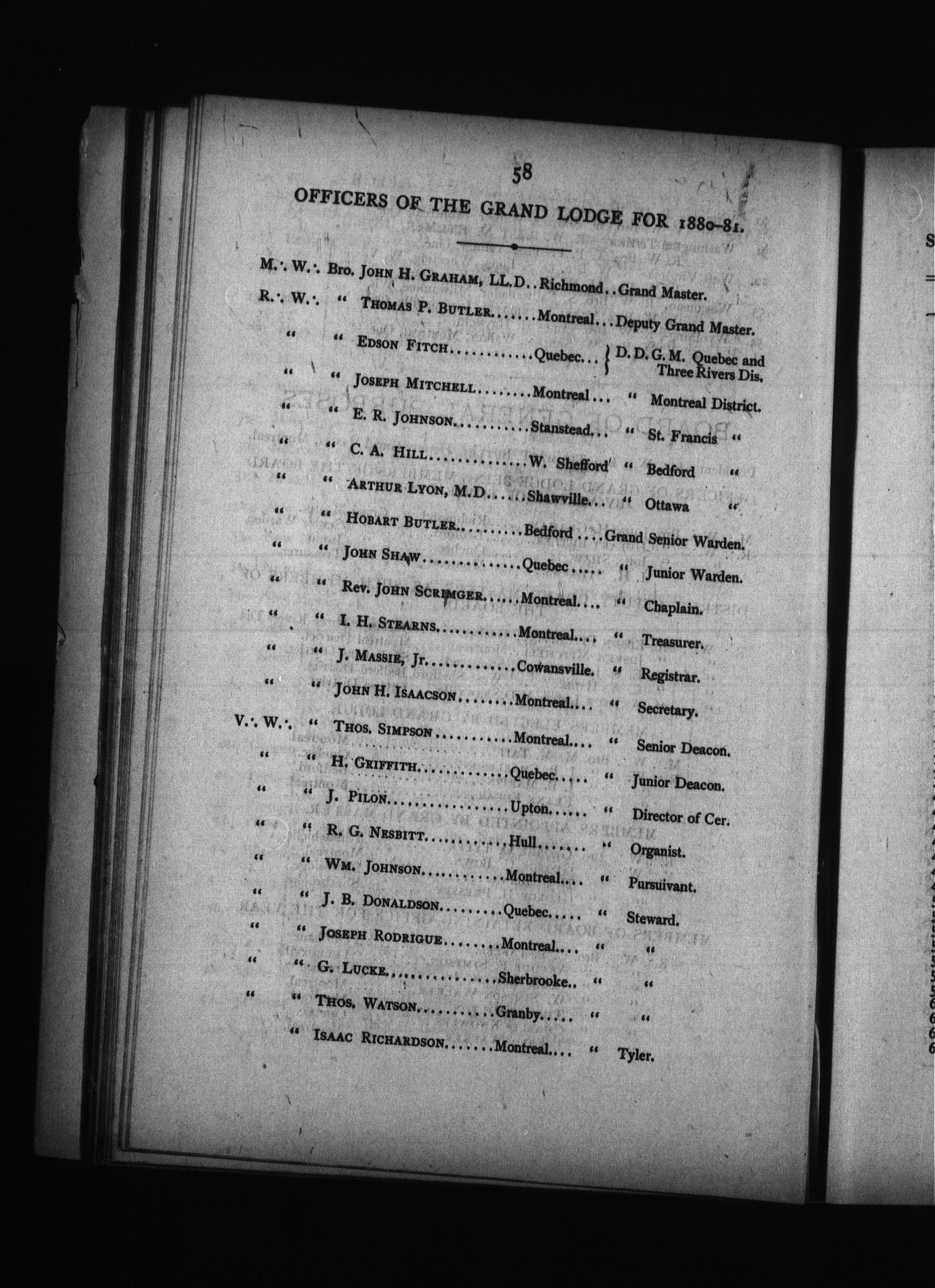 - [Montréal?] : [Grand Lodge of Quebec, Ancient Free and Accepted Masons], 1880