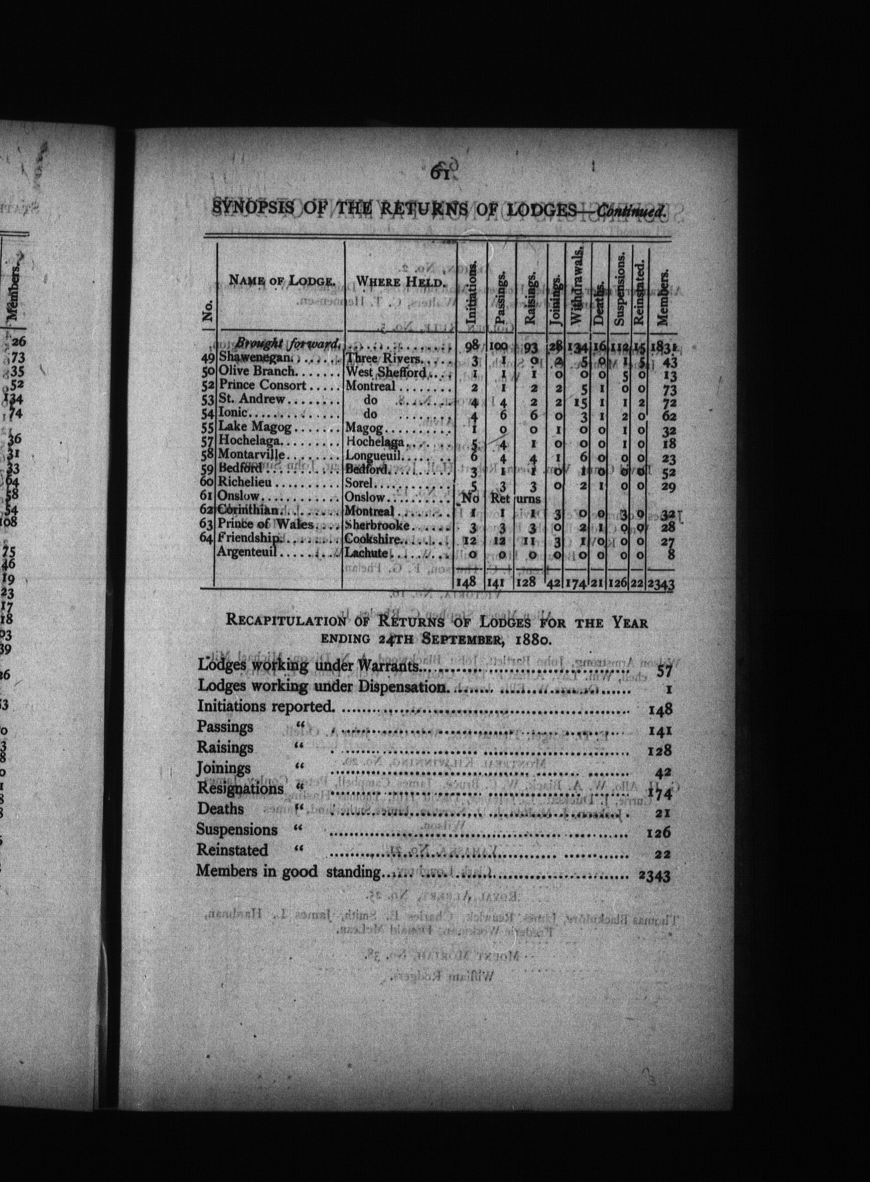 - [Montréal?] : [Grand Lodge of Quebec, Ancient Free and Accepted Masons], 1880