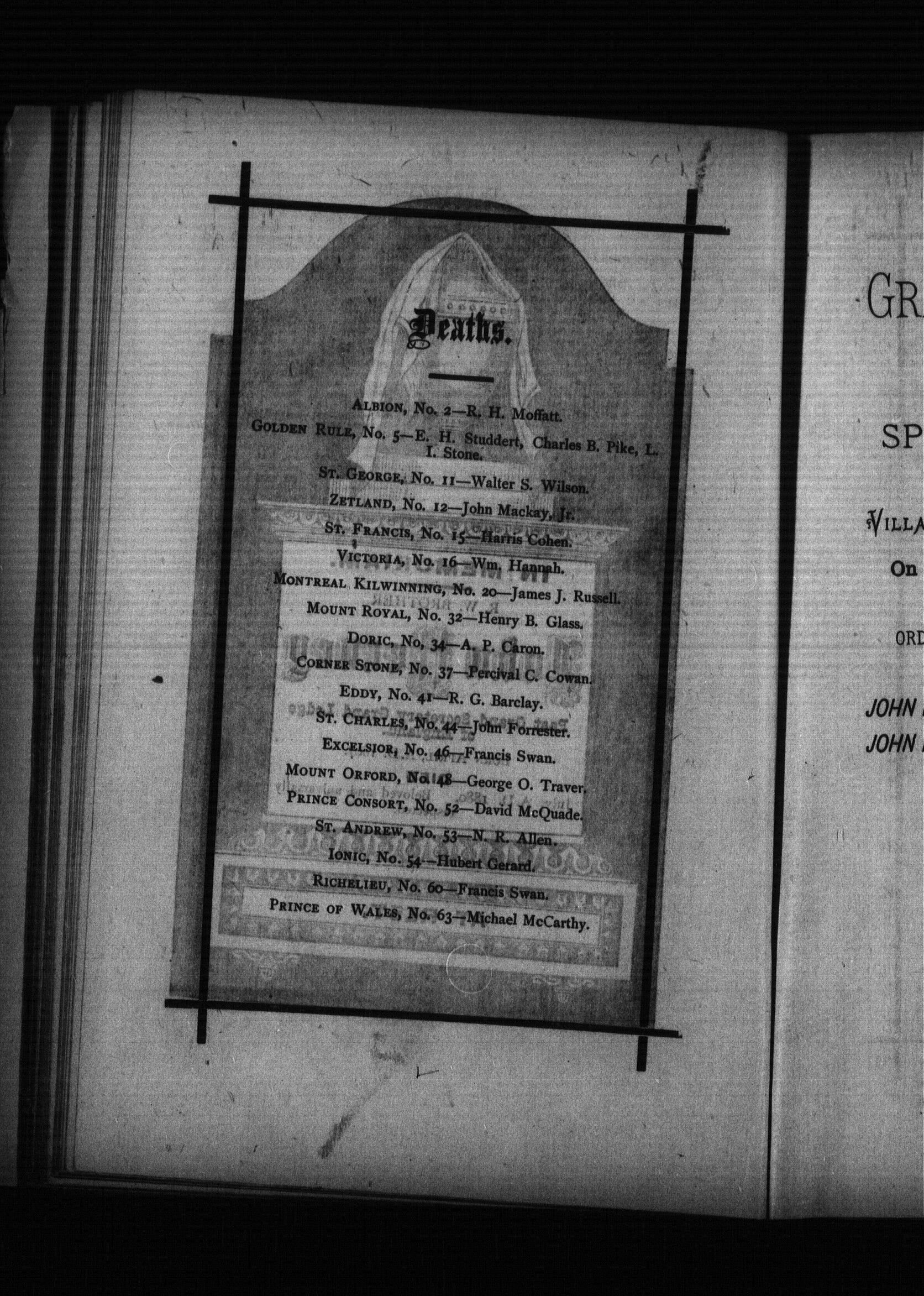 - [Montréal?] : [Grand Lodge of Quebec, Ancient Free and Accepted Masons], 1880