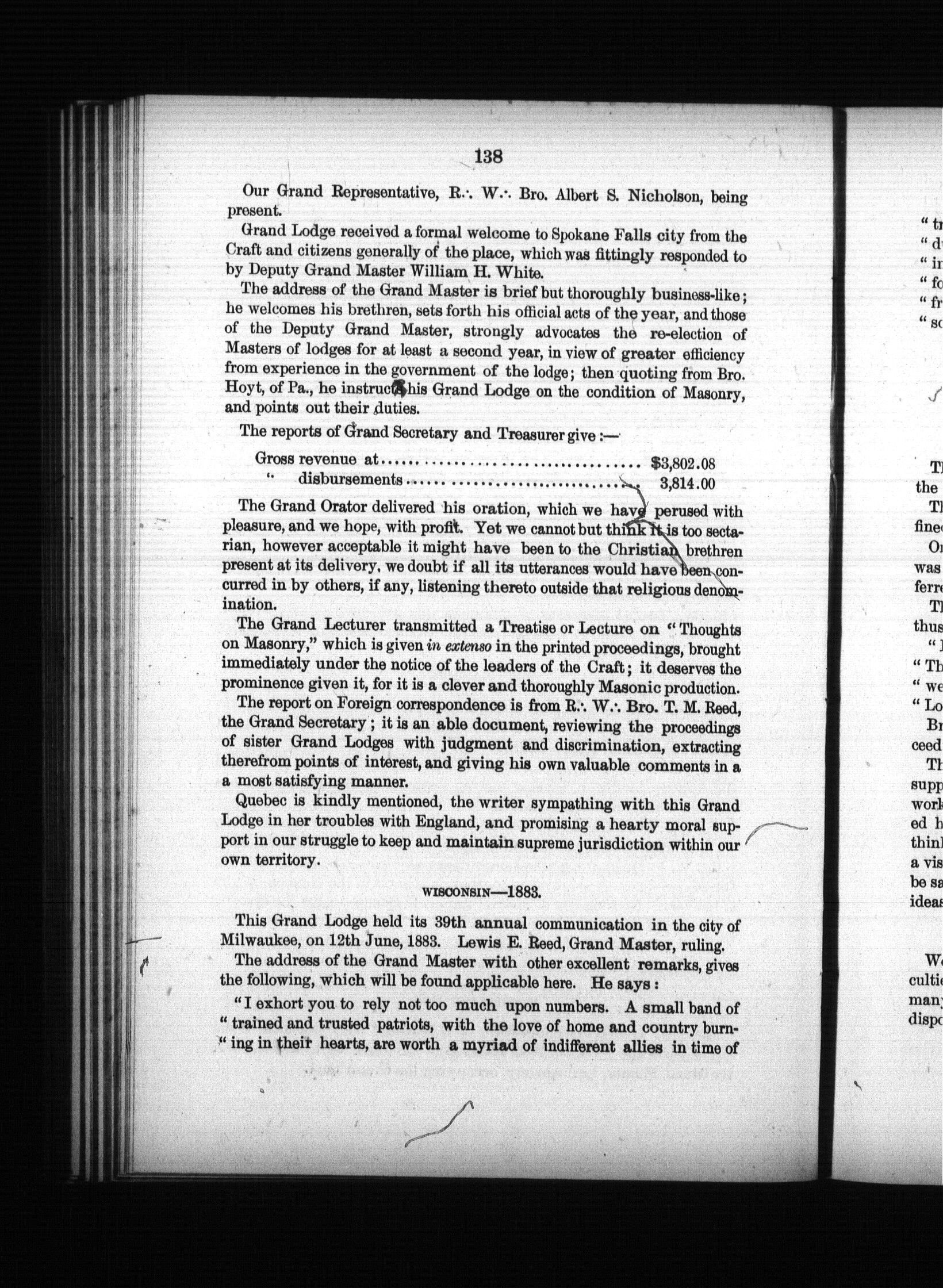 Aide [Montréal?] : [Grand Lodge of Quebec, Ancient Free and Accepted Masons], 1885; 149 images, 147 avec recherche en texte intégral