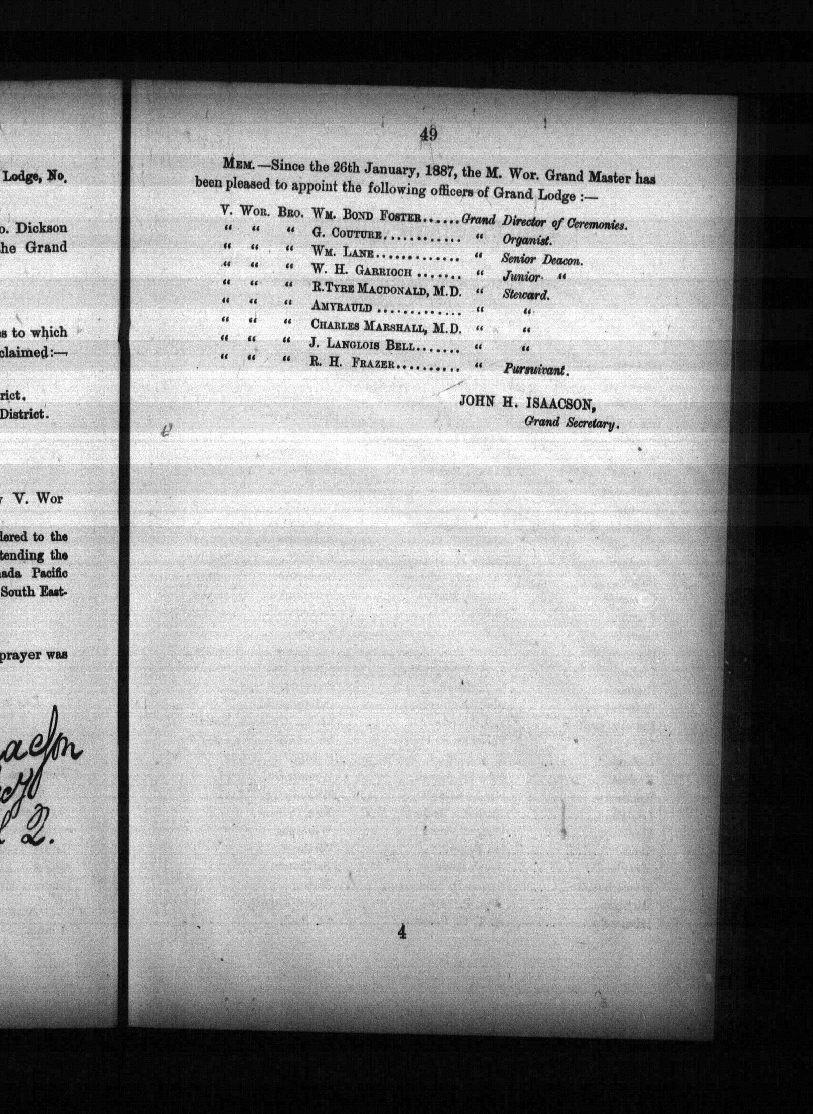 [Montréal?] : [Grand Lodge of Quebec, Ancient Free and Accepted Masons], 1887