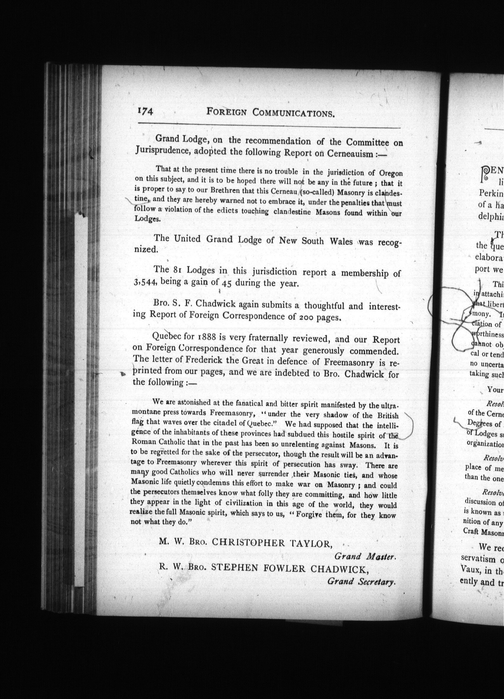 [Montréal?] : [Grand Lodge of Quebec, Ancient Free and Accepted Masons], 1890; 215 images, 214 avec recherche en texte intégral