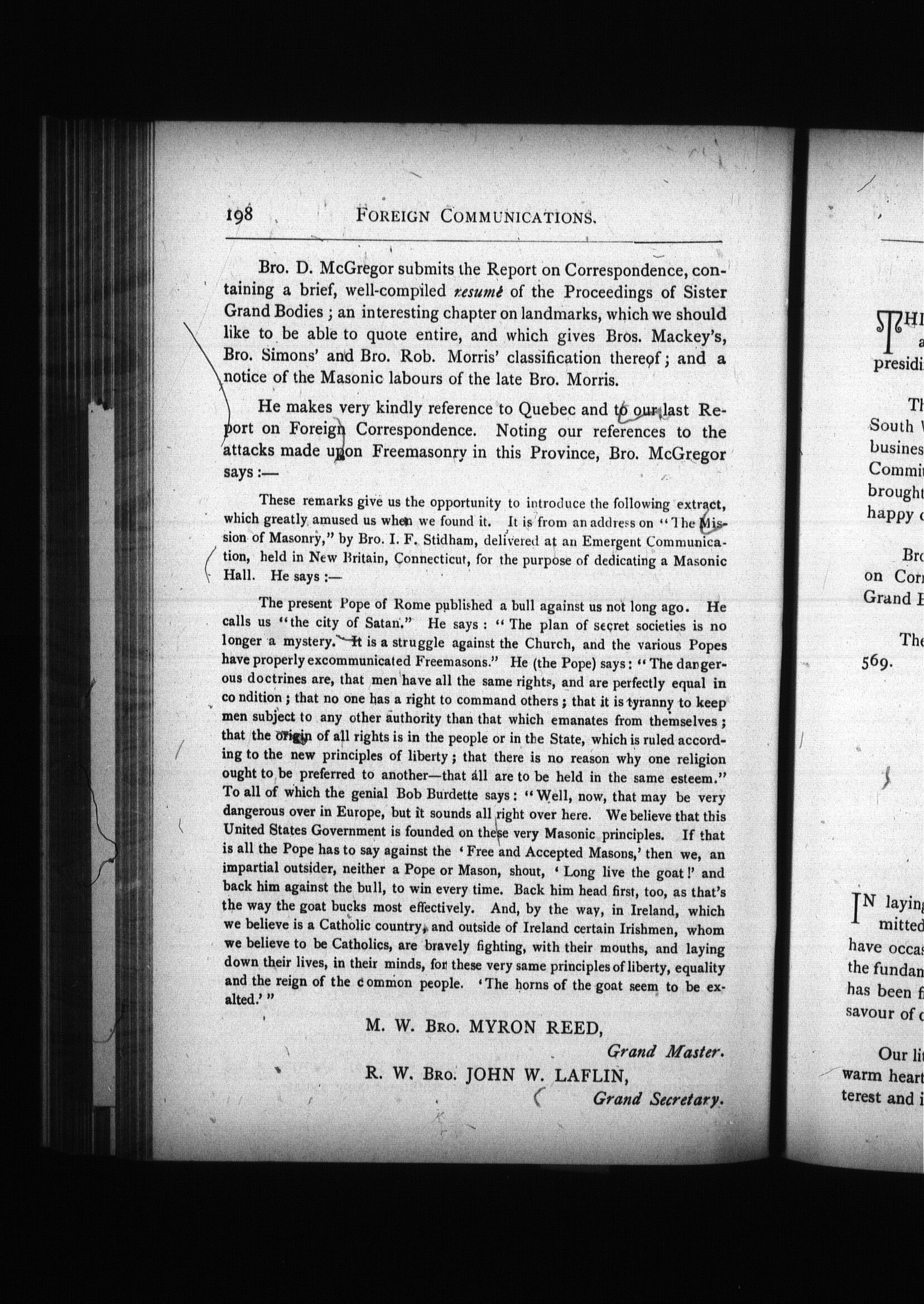 [Montréal?] : [Grand Lodge of Quebec, Ancient Free and Accepted Masons], 1890; 215 images, 214 avec recherche en texte intégral