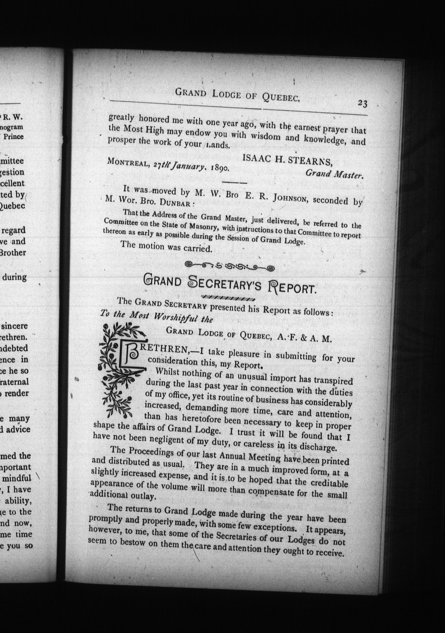 - [Montréal?] : [Grand Lodge of Quebec, Ancient Free and Accepted Masons], 1890