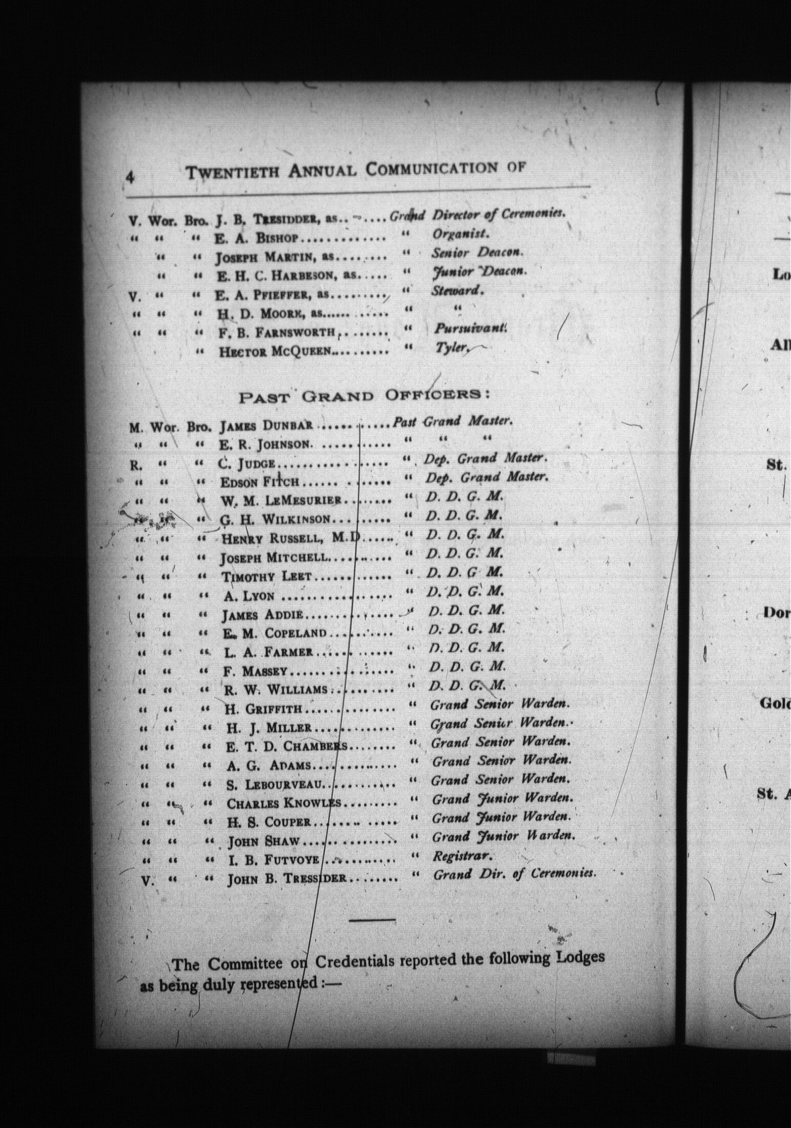 Proceedings of the Grand Lodge of Quebec, Ancient Free and Accepted Masons ... at its ... annual communication : Proceedings of the Grand Lodge of Quebec, Ancient Free and Accepted Masons, at the twentieth annual communication : Twentieth (1890)