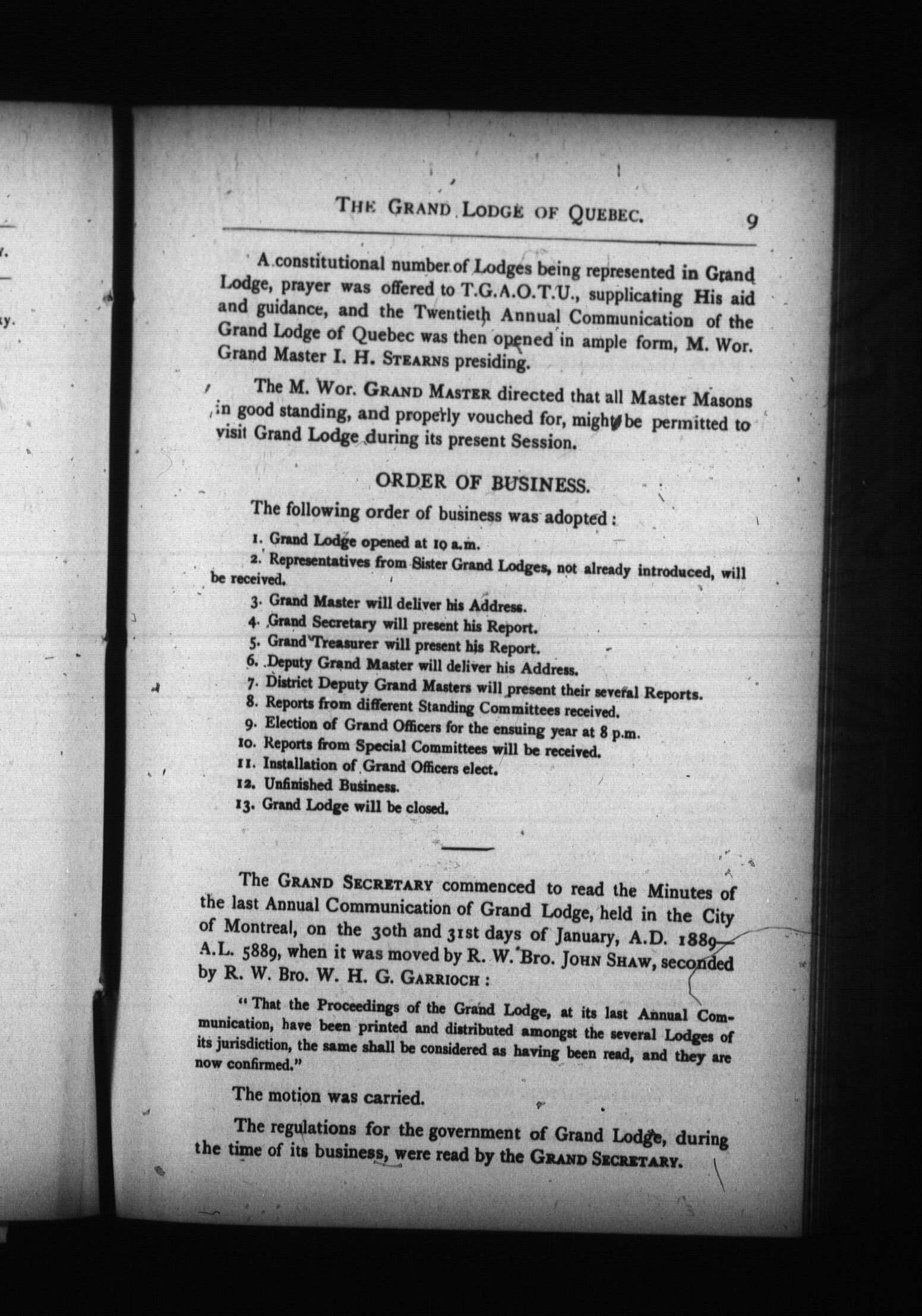 Proceedings of the Grand Lodge of Quebec, Ancient Free and Accepted Masons ... at its ... annual communication : Proceedings of the Grand Lodge of Quebec, Ancient Free and Accepted Masons, at the twentieth annual communication : Twentieth (1890)