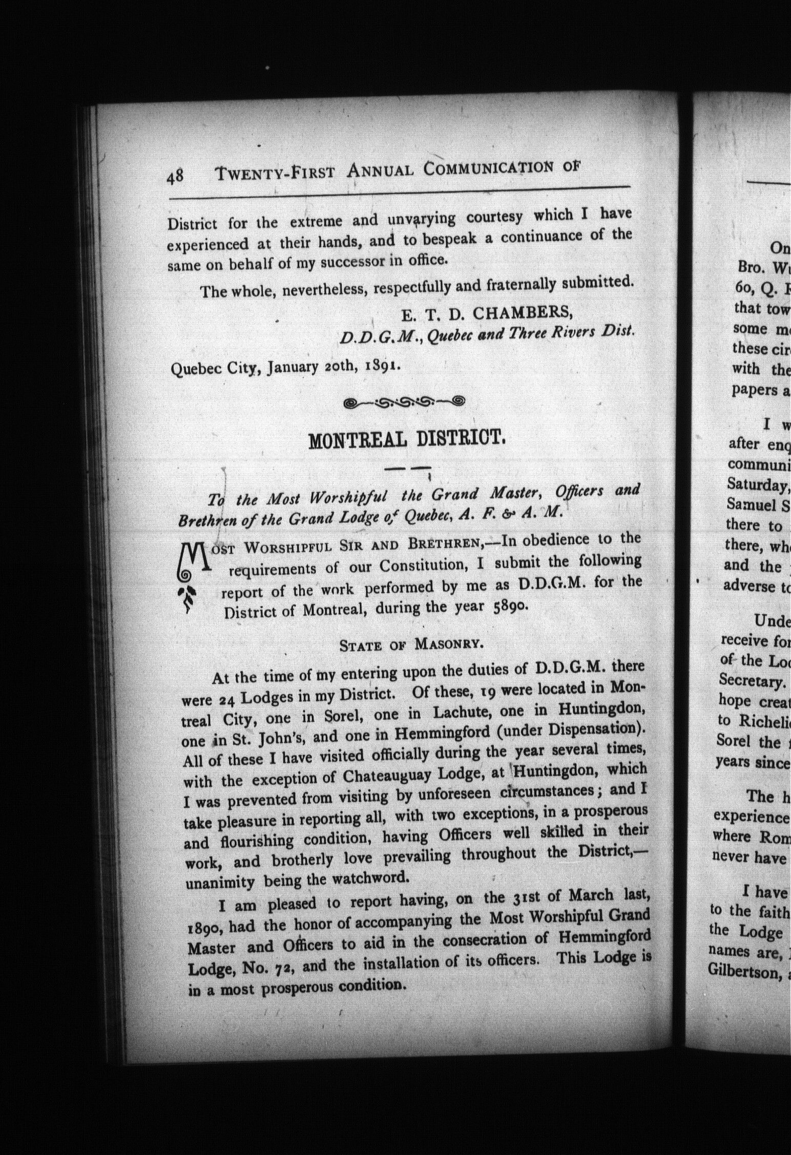 Proceedings of the Grand Lodge of Quebec, Ancient Free and Accepted Masons ... at its ... annual communication : Proceedings of the Grand Lodge of Quebec, Ancient Free and Accepted Masons, at the twenty-first annual communication : Twenty-First (1891)