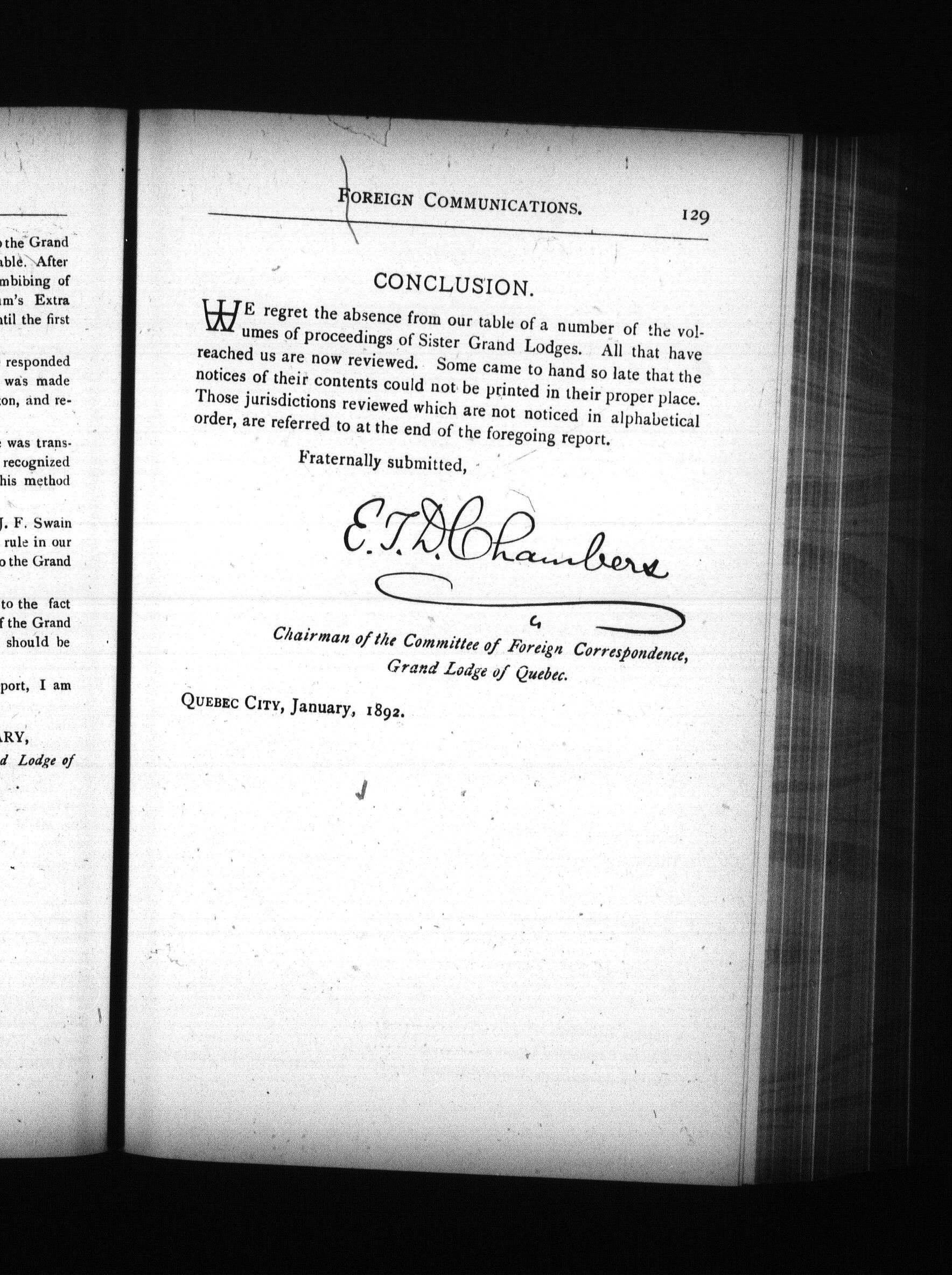 [Montréal?] : [Grand Lodge of Quebec, Ancient Free and Accepted Masons], 1892