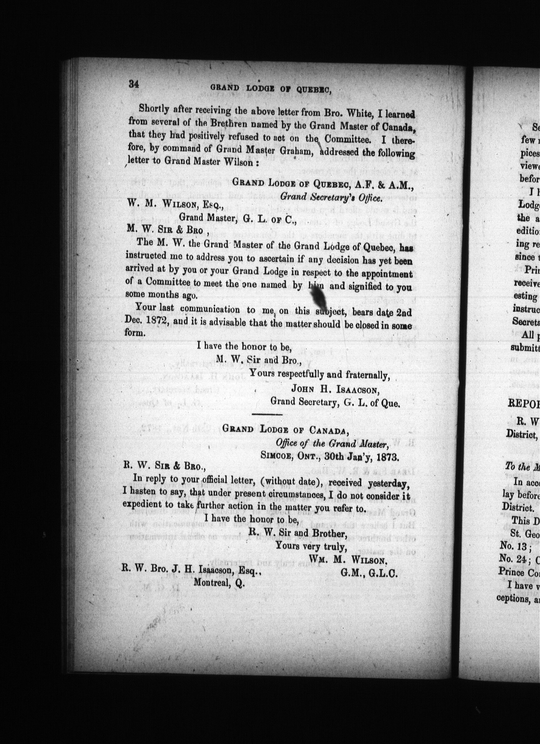 - Proceedings of the Grand Lodge of Quebec, Ancient Free and Accepted Masons, at its fourth annual communication : Fourth (1873)