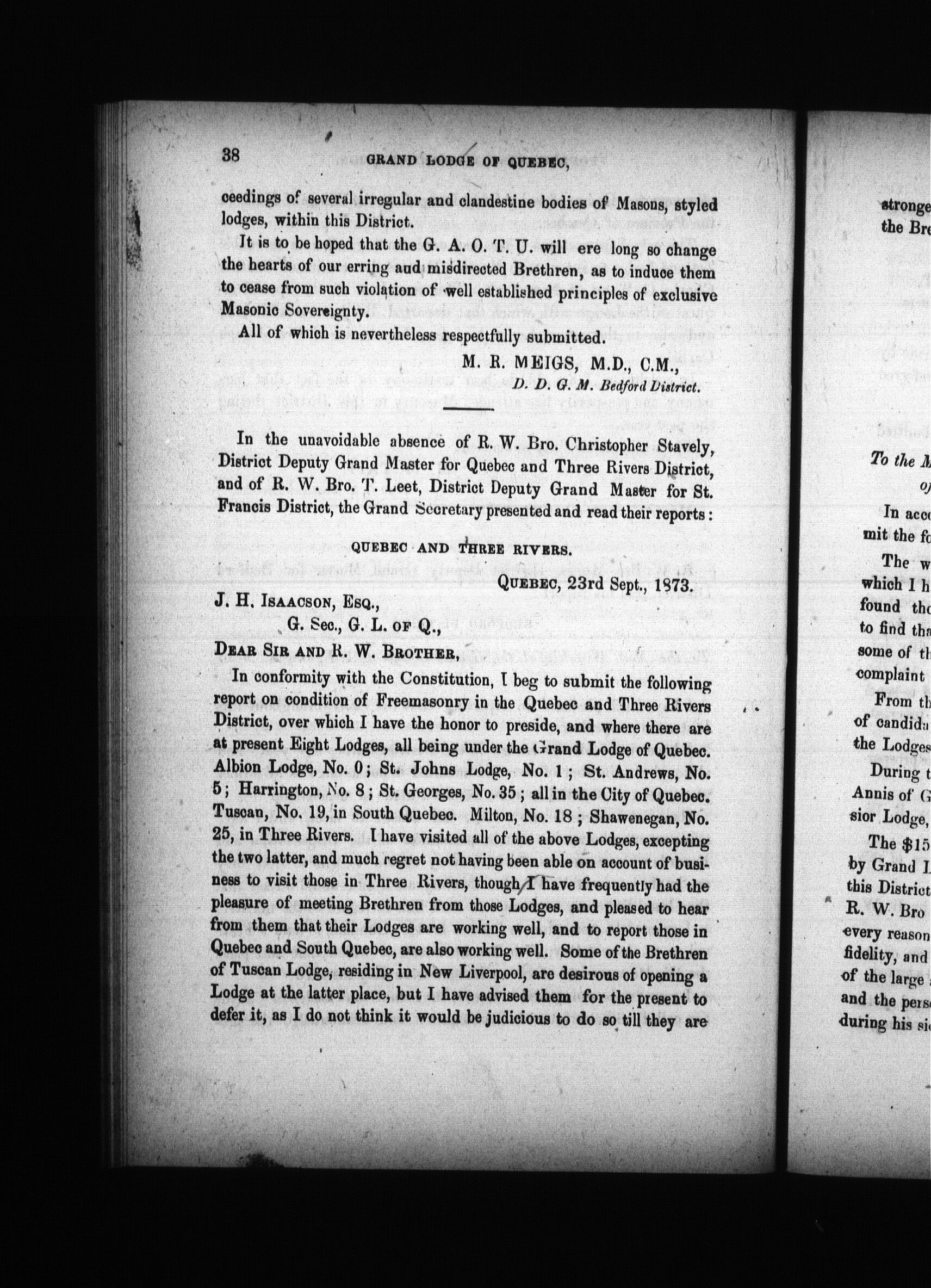 [Montréal?] : [Grand Lodge of Quebec, Ancient Free and Accepted Masons], 5873 [1873]; 72 images avec recherche en texte intégral