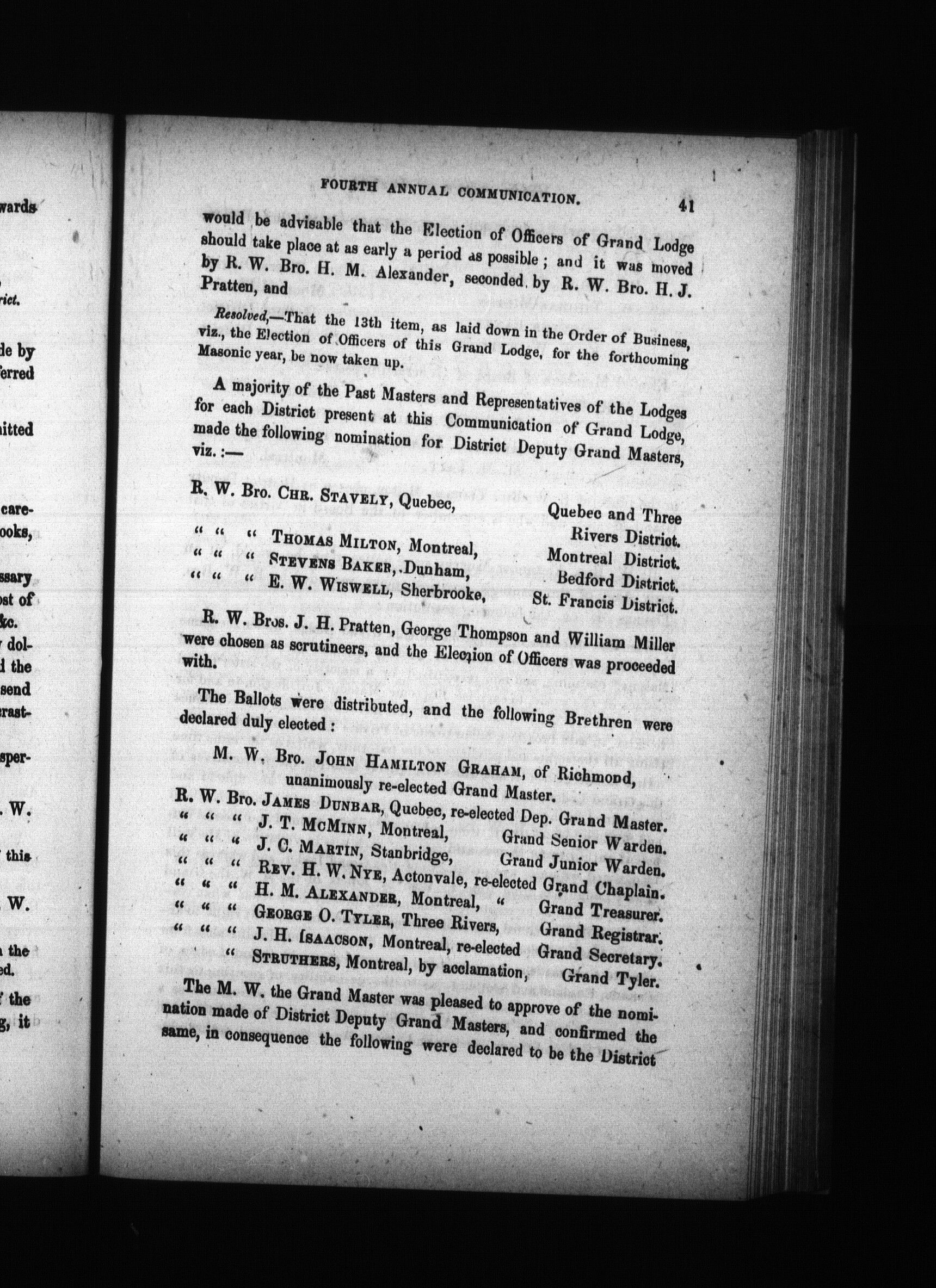 - Proceedings of the Grand Lodge of Quebec, Ancient Free and Accepted Masons, at its fourth annual communication : Fourth (1873)