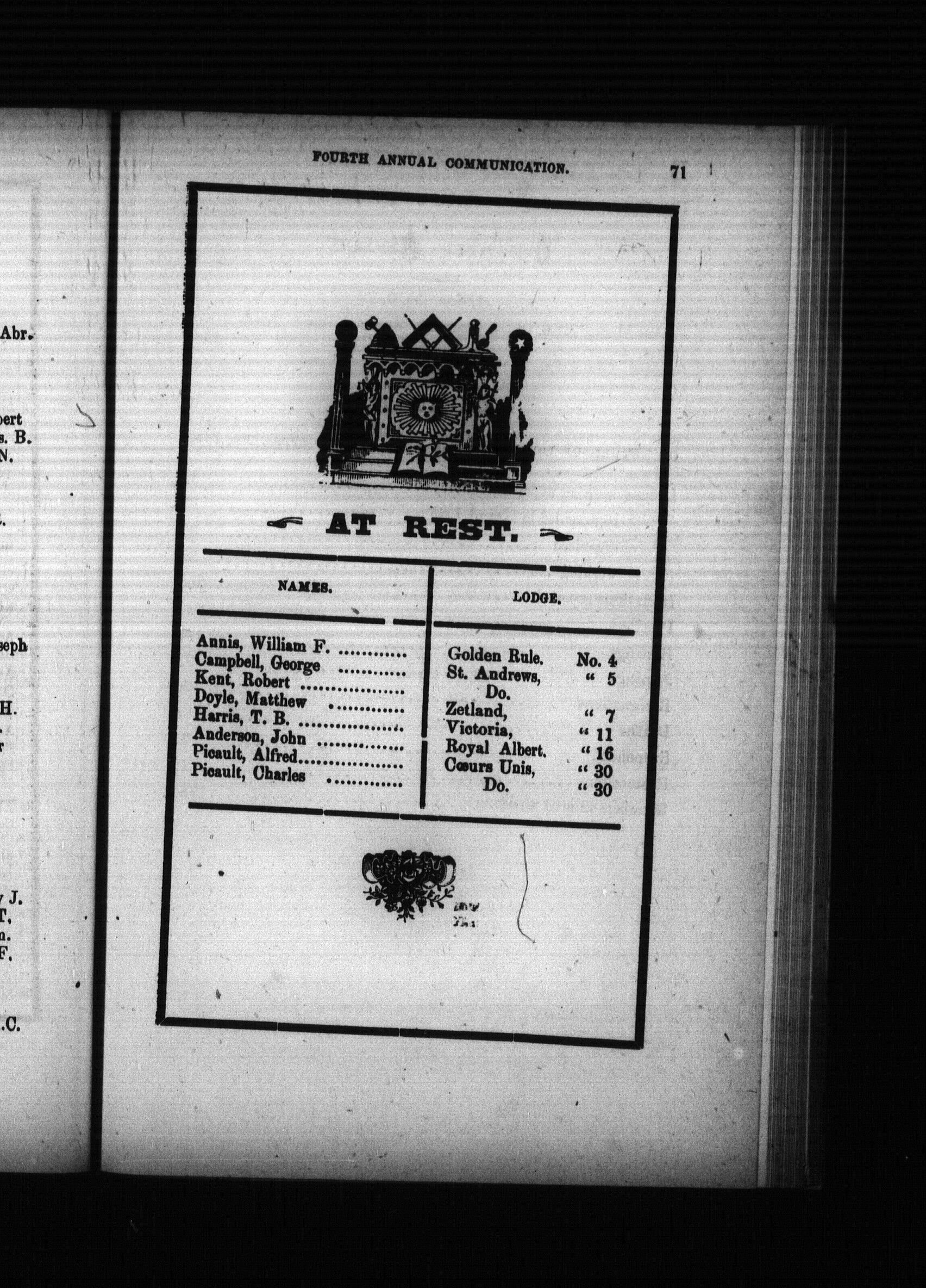 - Proceedings of the Grand Lodge of Quebec, Ancient Free and Accepted Masons, at its fourth annual communication : Fourth (1873)